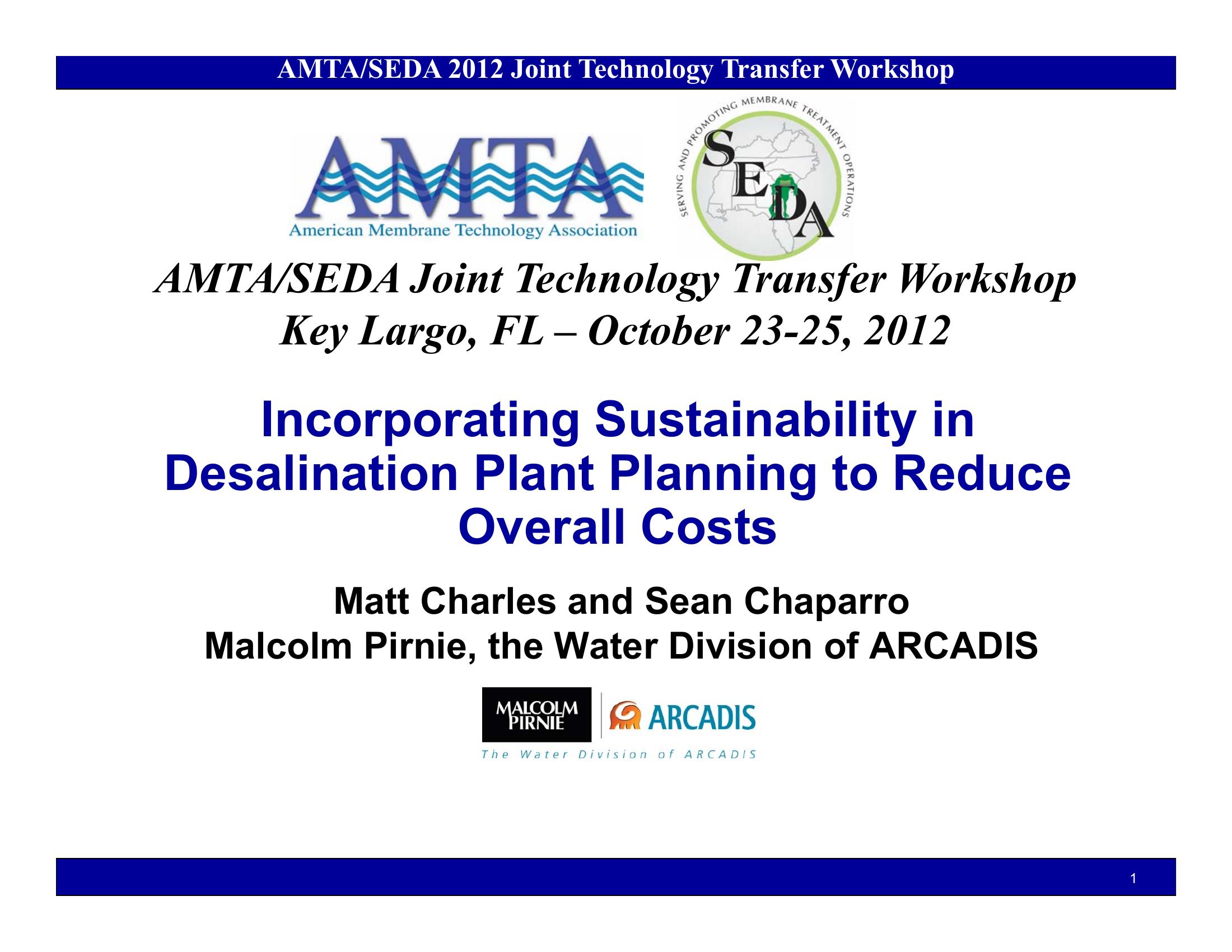 Incorporating Sustainability in Desalination Plant Planning to Reduce Overall Project