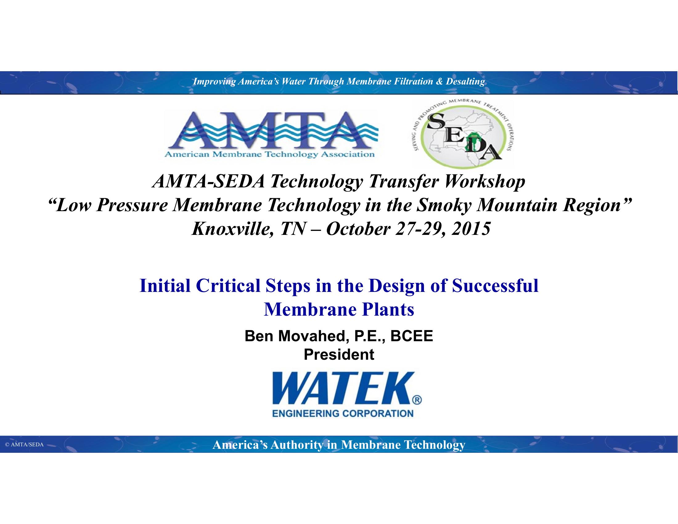 | Keywords | Membrane Plants, Design, Water and Wastewater Treatment |