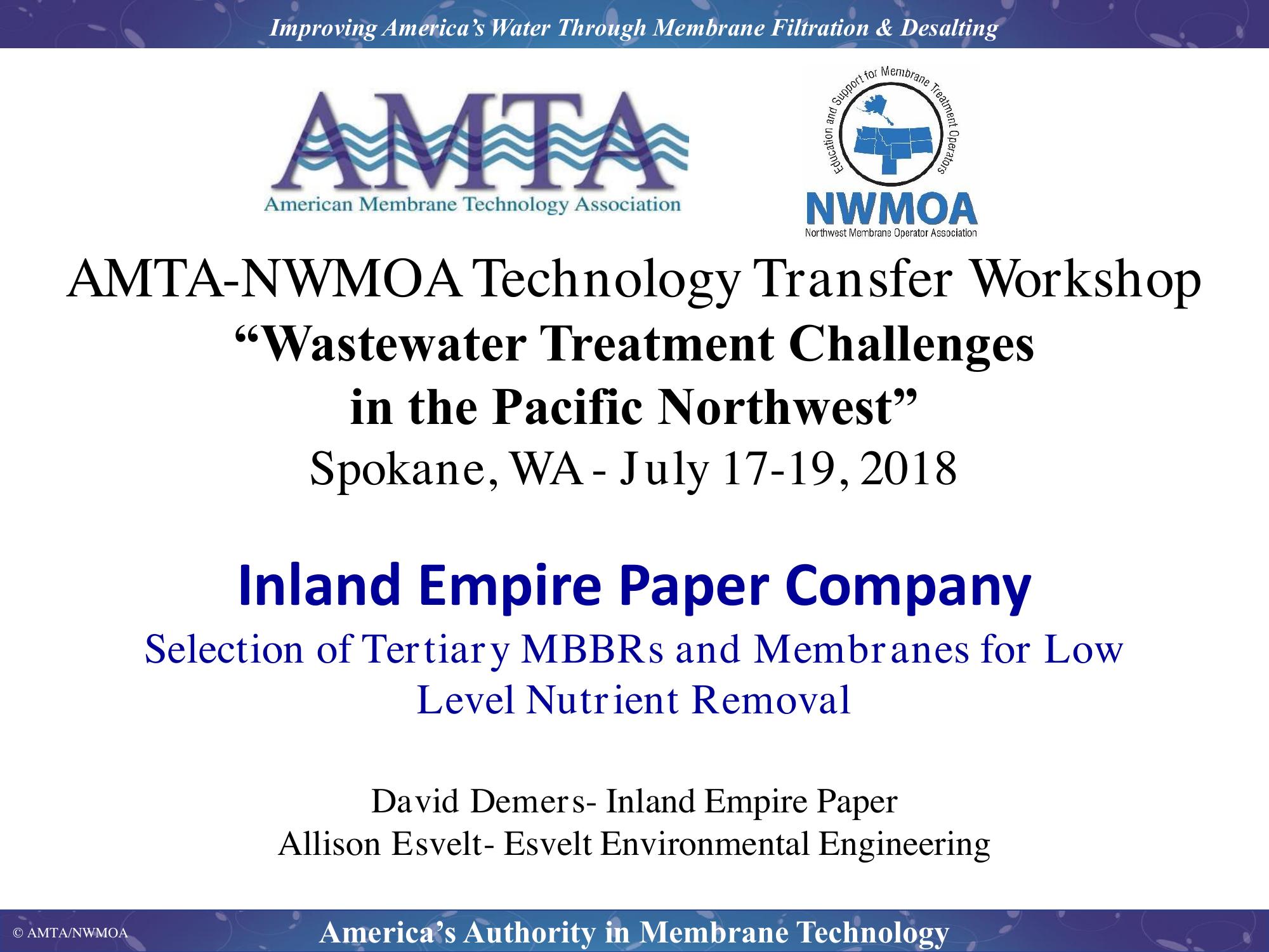 Inland Empire Paper Company (IEP) is a pulp and paper mill that produces newsprint and specialty paper products in Millwood, Washington. Over the last 17 years, IEP has been optimizing its process water use and wastewater treatment system in anticipation of compliance with very low nutrient discharge limitations for discharge to the Spokane River. During this period, IEP pilot tested 22 advanced treatment technologies including 9 different membrane filtration systems. This presentation describes how IEP ultimately selected tertiary moving bed biofilm reactors (MBBRs) ahead of pressurized ultrafiltration membranes to achieve its nutrient limitiations.