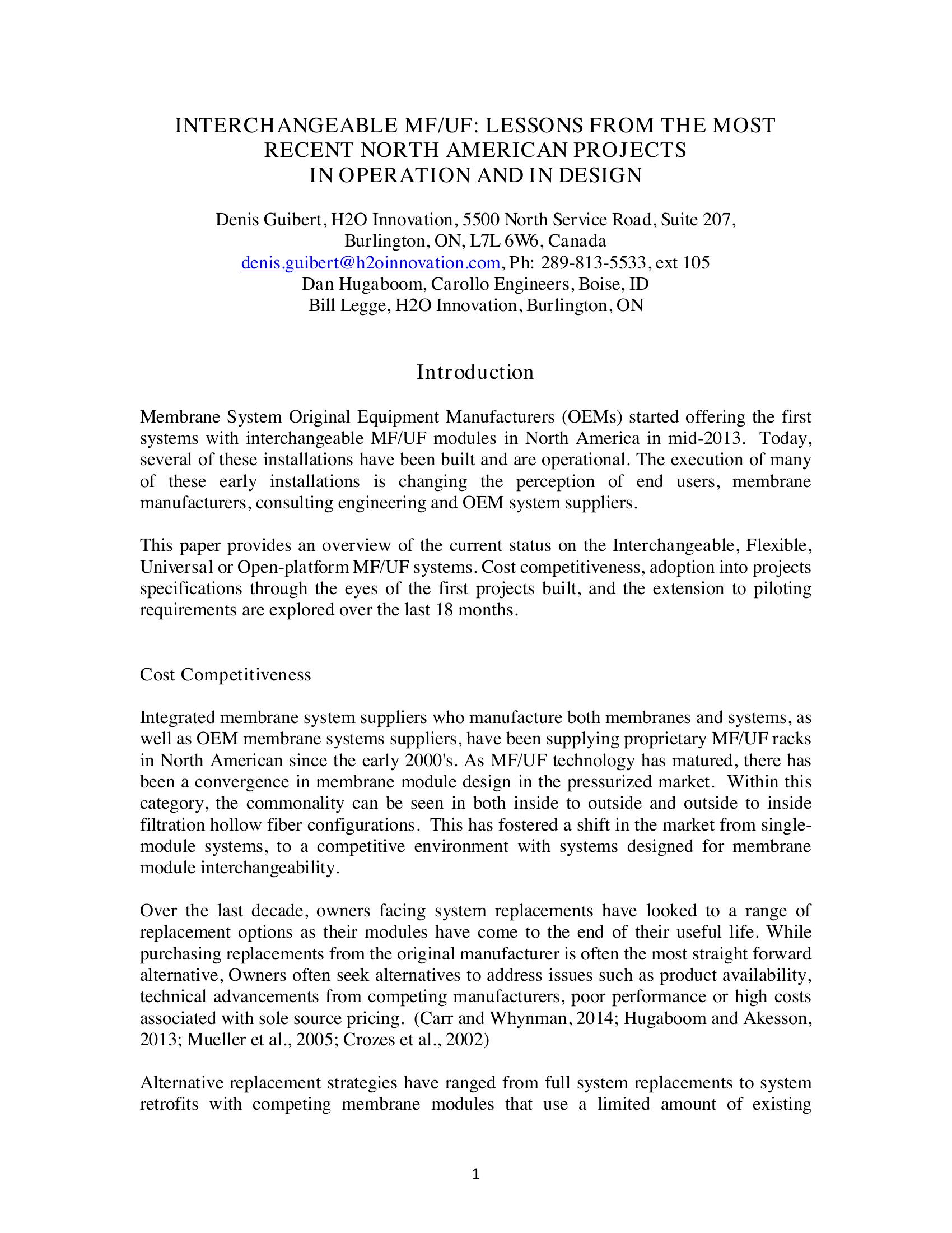 Interchangeable MF/UF: Lessons from the Most Recent North American Projects in Operation and in Design