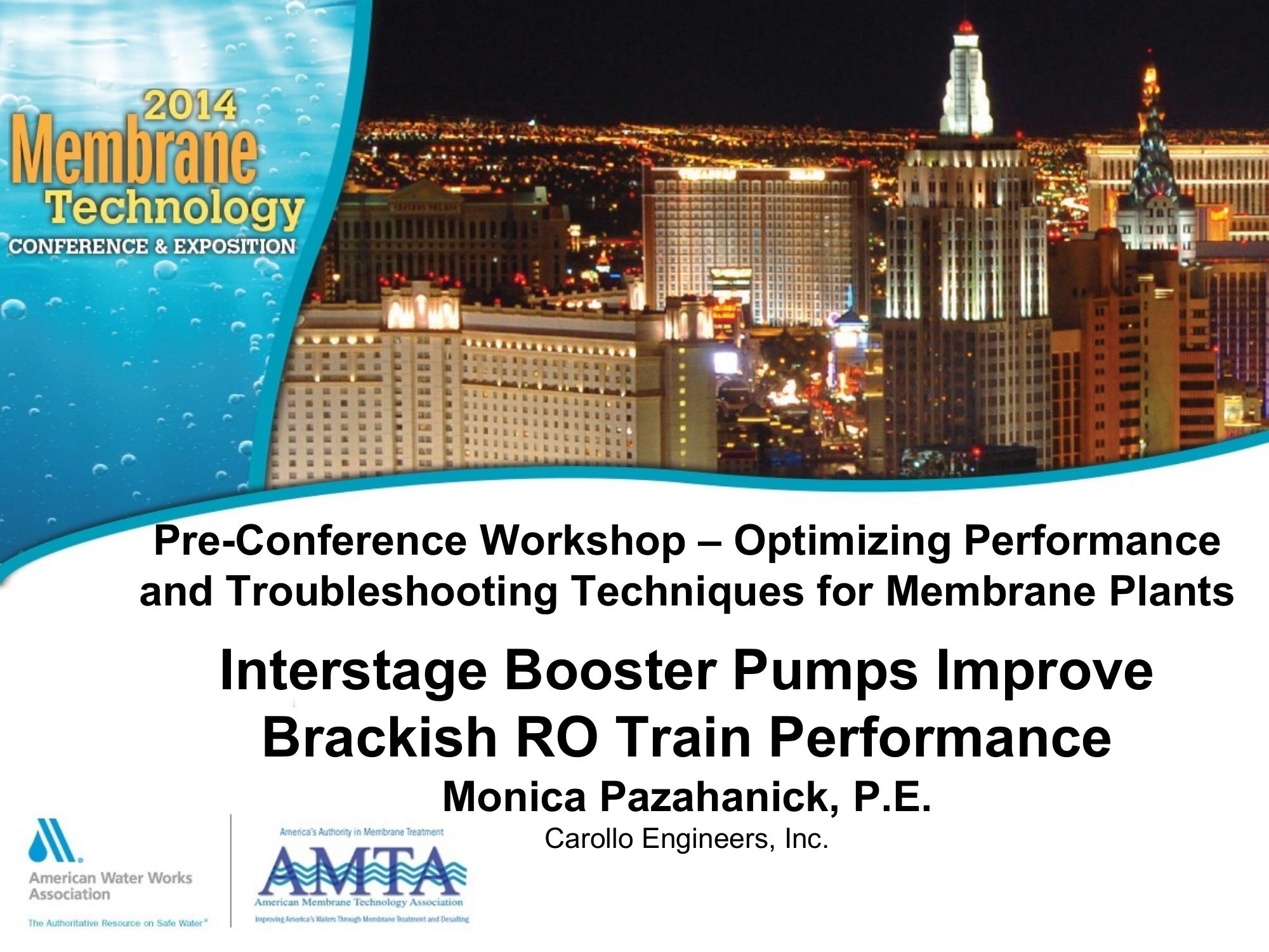 | Keywords | Booster Pumps, energy recovery, membrane system design. |
