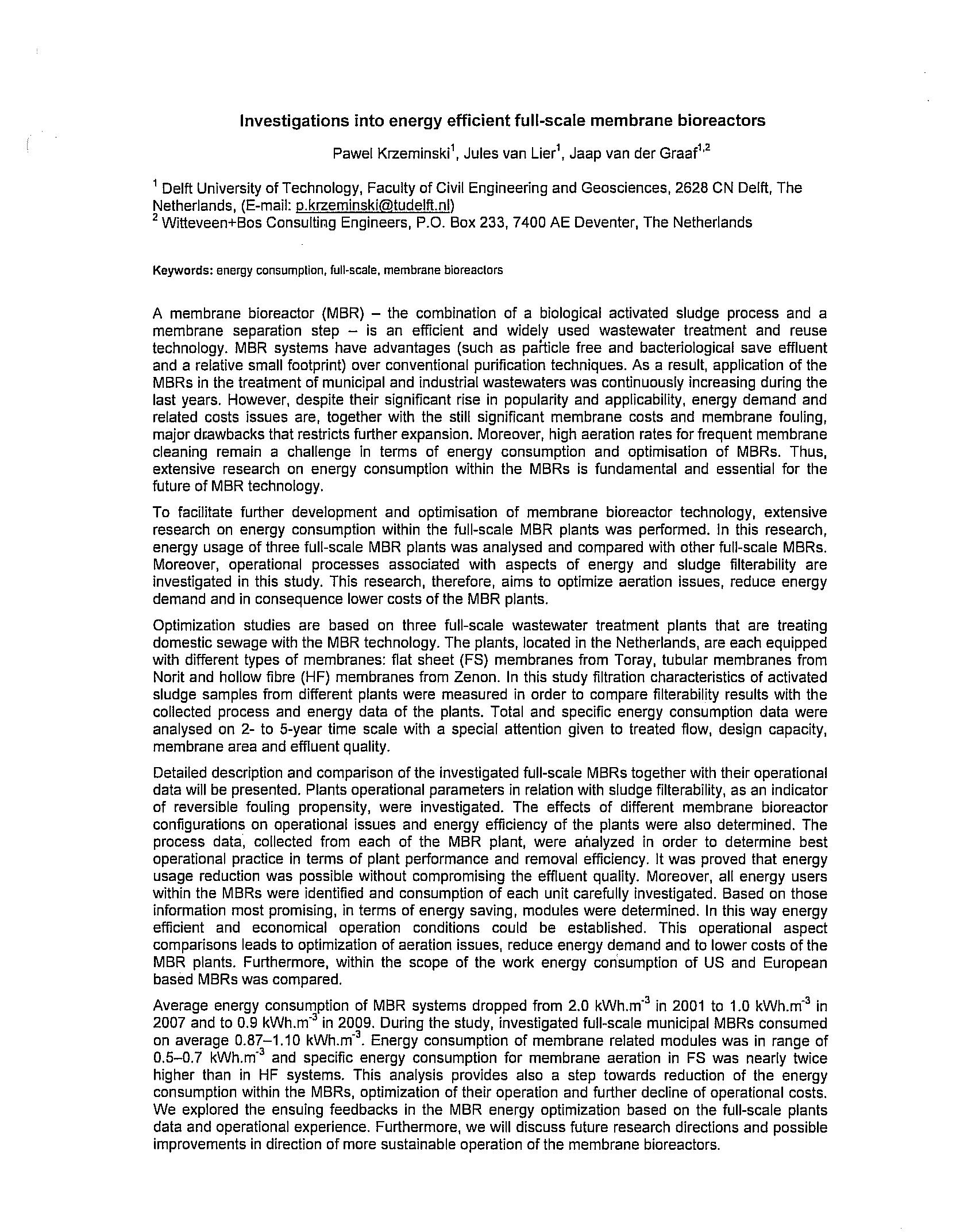 | Keywords | membrane bioreactor, MBR, energy consumption, full scale |