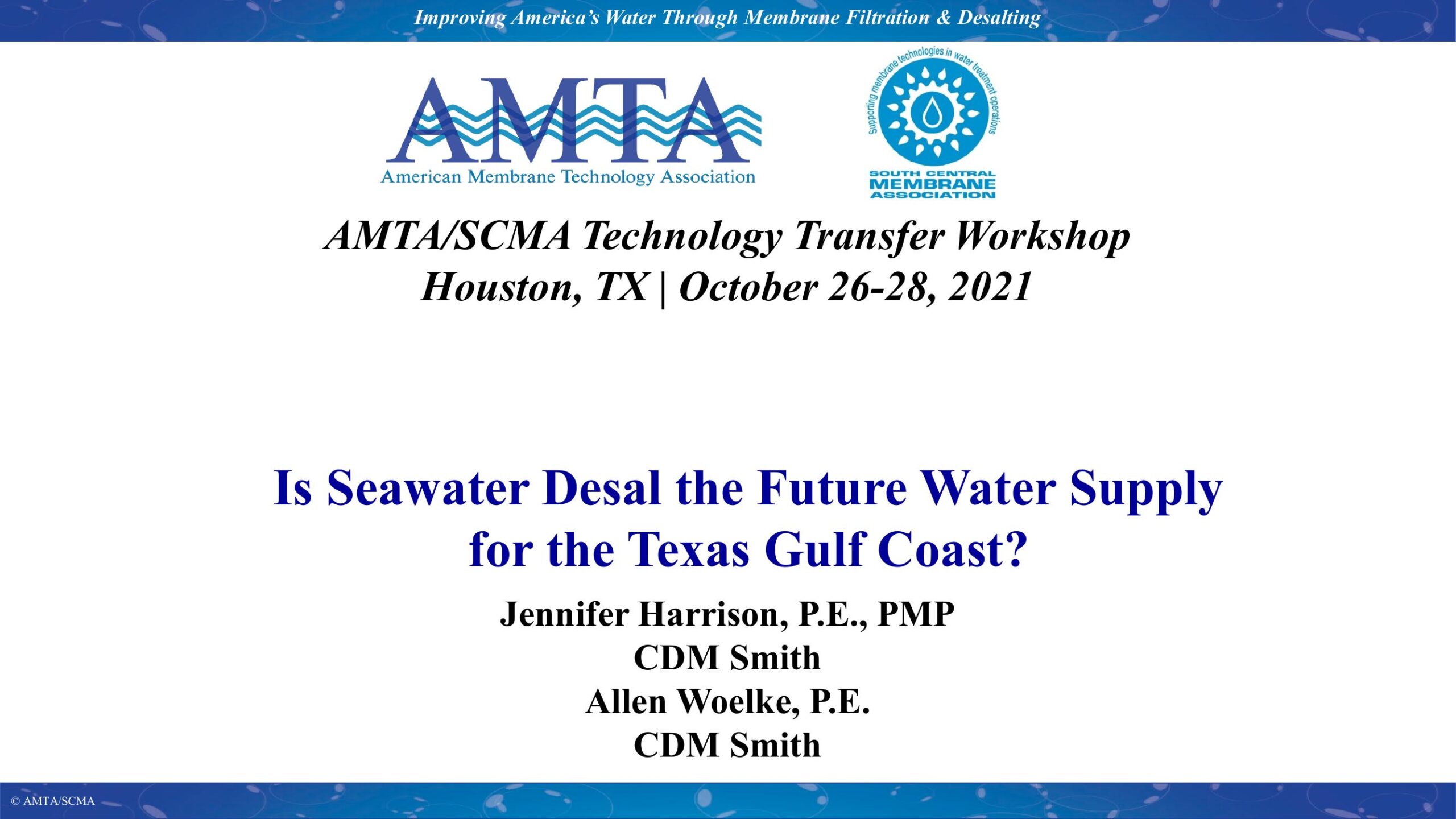In 2013 CDM Smith prepared the Brazoria County Regional Water Facility study for the Brazosport Water Authority (BWA). The resulting recommendation was for the BWA to expand the water treatment, pumping and transmission system and to diversify their water source (with options such as brackish ground water) to improve water reliability during periods of drought and to serve future customers in specific areas. In 2020, CDM Smith performed a study to determine the feasibility of seawater desalination as a potential water supply option for future demands. Seawater Desal is included as an option for water supply for up to 10-15 MGD because of the capability for it to be integrated with the first phase of BWA’s brackish groundwater desalination plant (currently planned for up to 6 MGD). This presentation will review the process taken in the study, the BWAís future water demands and necessary system upgrades and expansions for integration of the future Seawater Desal supply.