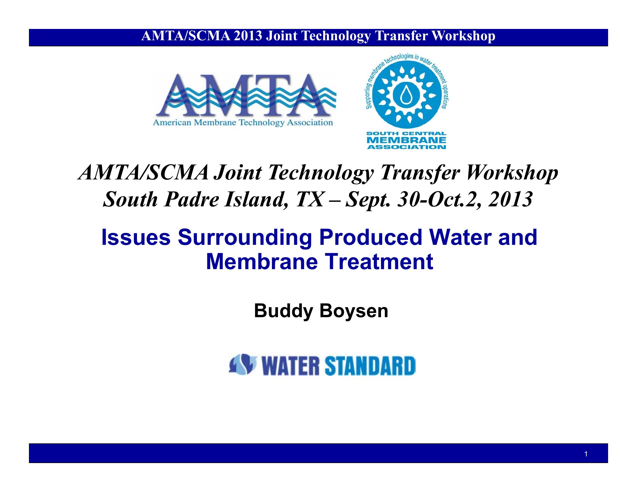 This PowerPoint discusses issues surrounding Produced water and membrane treatment for Texas locations.