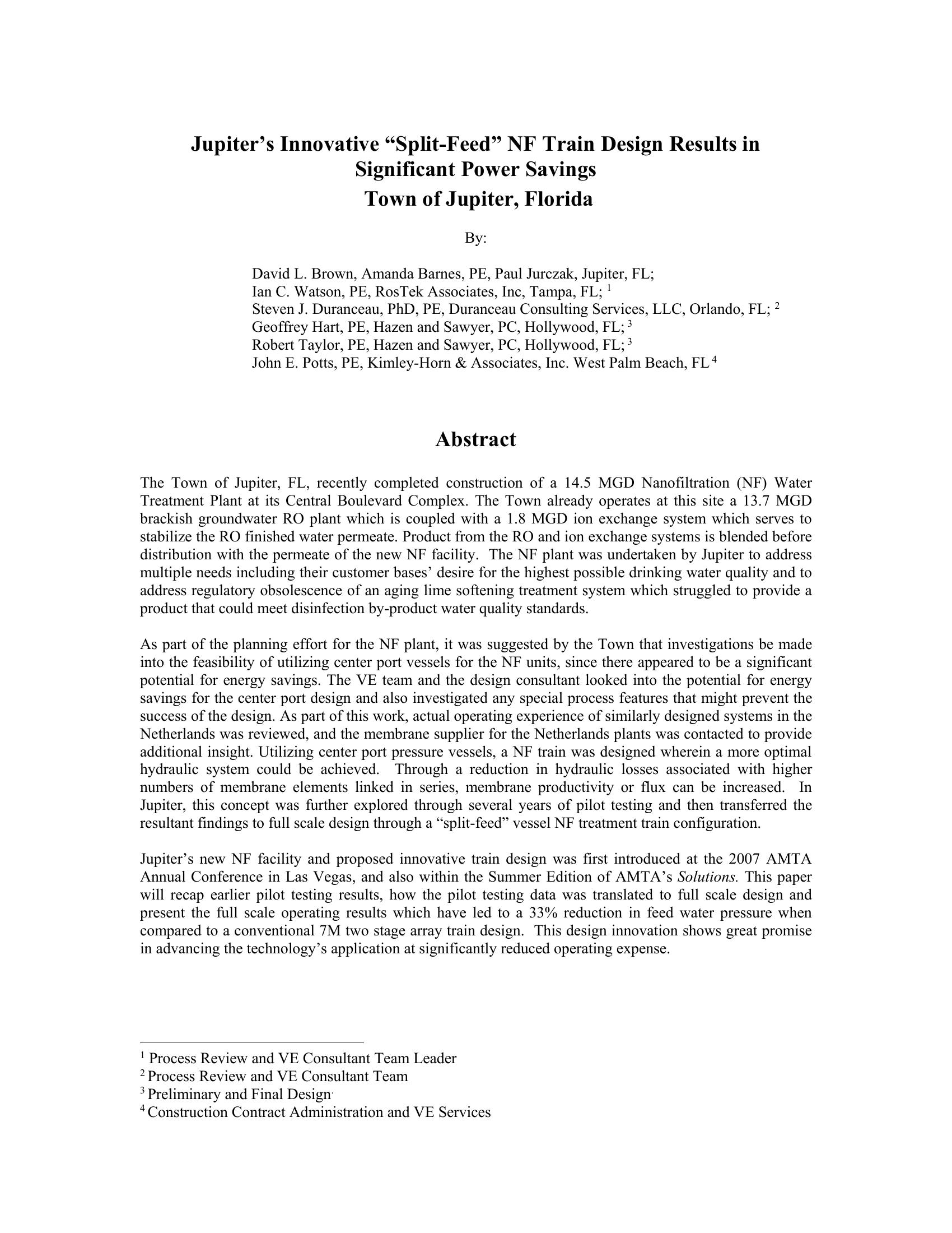 Jupiter’s Innovative “Split-Feed” NF Train Design Results in Significant Power Savings – Town of Jupiter, Florida