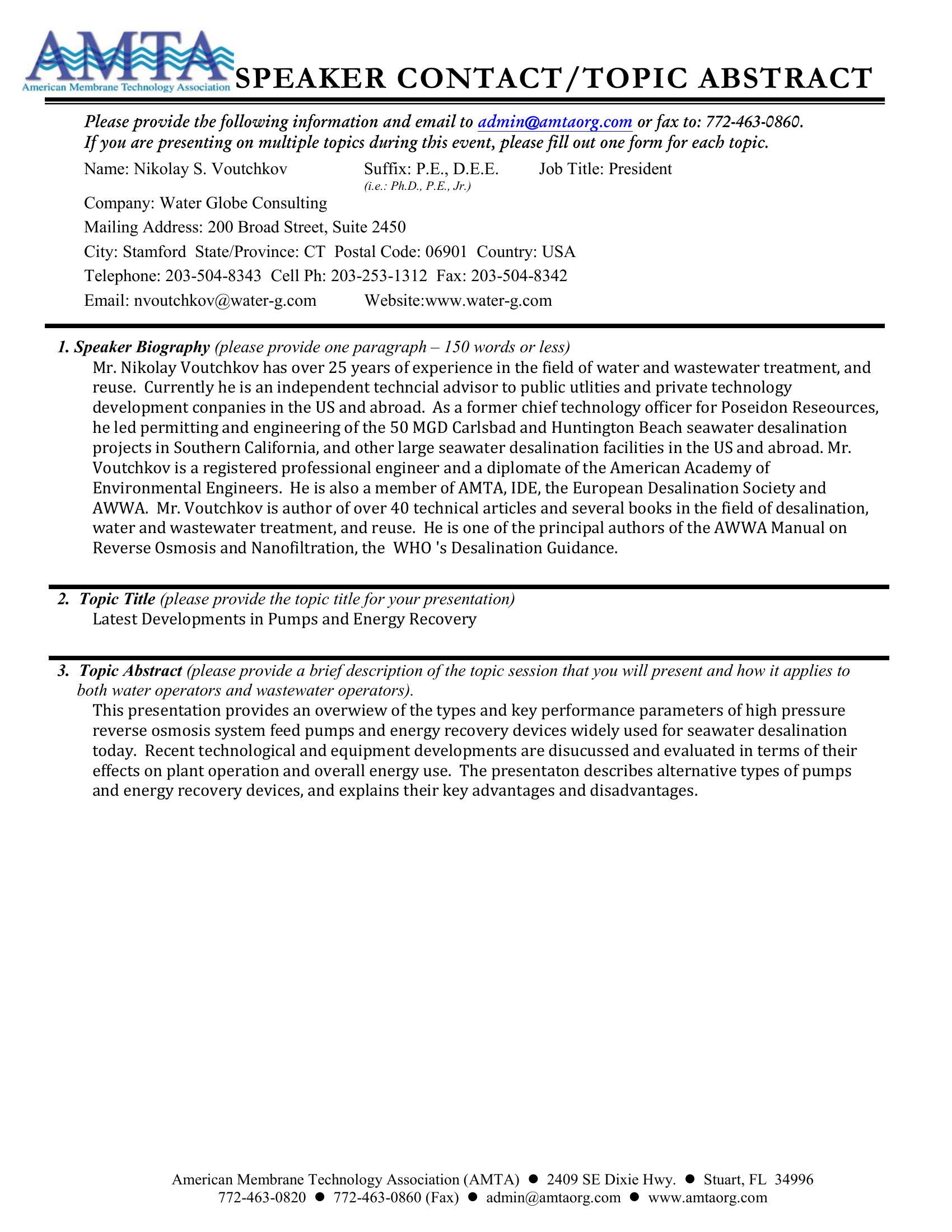 | Keywords | Energy recovery, RO, water desalination membrane processes |