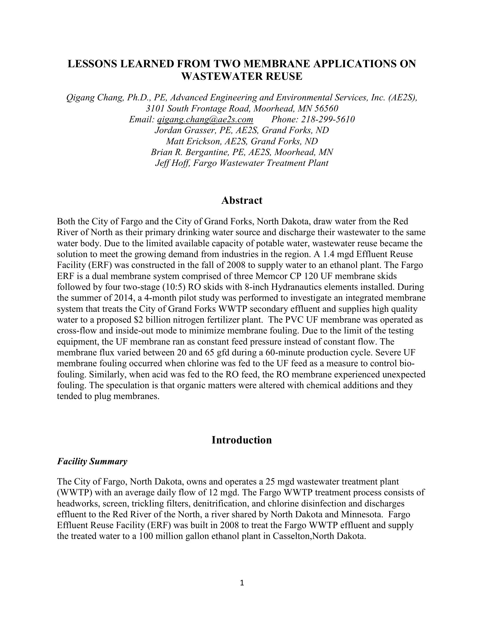 | Keywords | Fargo, Grand Forks, water reuse, pilot |