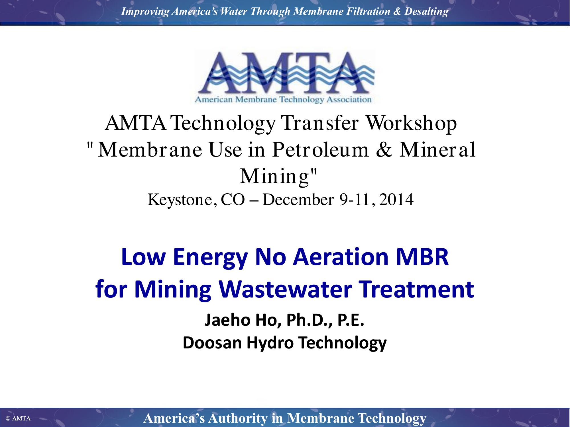 Low Energy No Aeration MBR for Mining Wastewater Treatment
