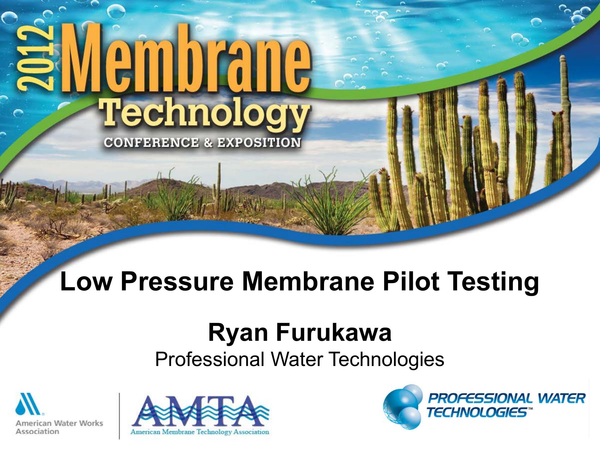 This presentation provides an overview of low pressure membrane pilot testing. It describes what pilot testing is, and what types of factors including: goals, duration, protocol, performance monitoring and data analysis should be considered. Significance of determining optimal operating conditions and establishing backwash frequency, duration and chemicals cleaning frequency are described.