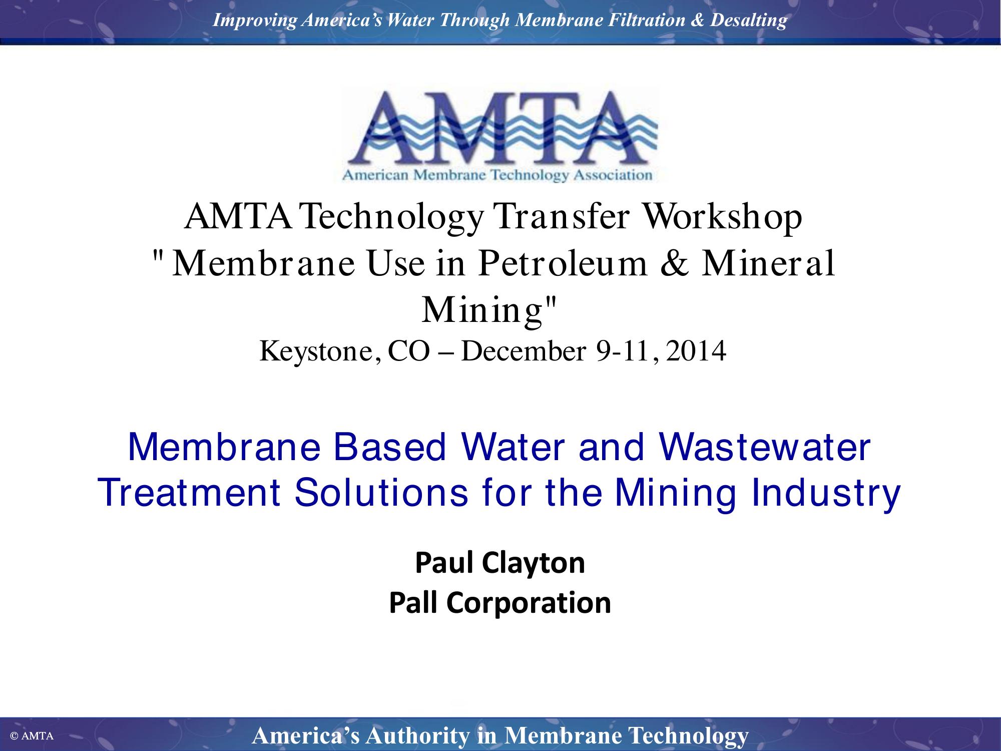 Membrane Based Water & Wastewater Treatment Solutions for the Mining Industry