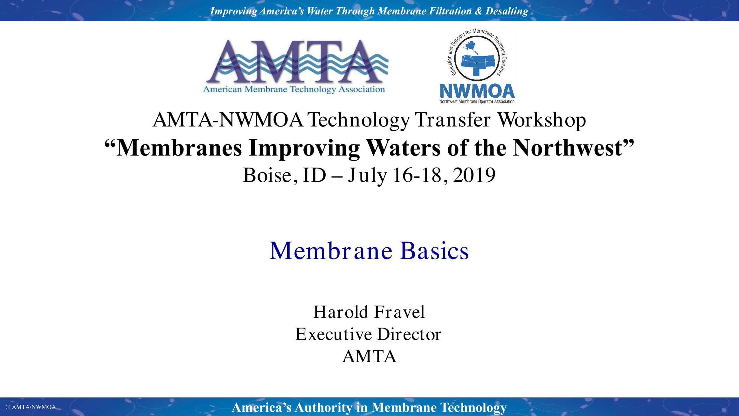 The presenations will provide a background on membrane processes for water treatment including RO, NF, MF and UF along with basic terminology and key points.