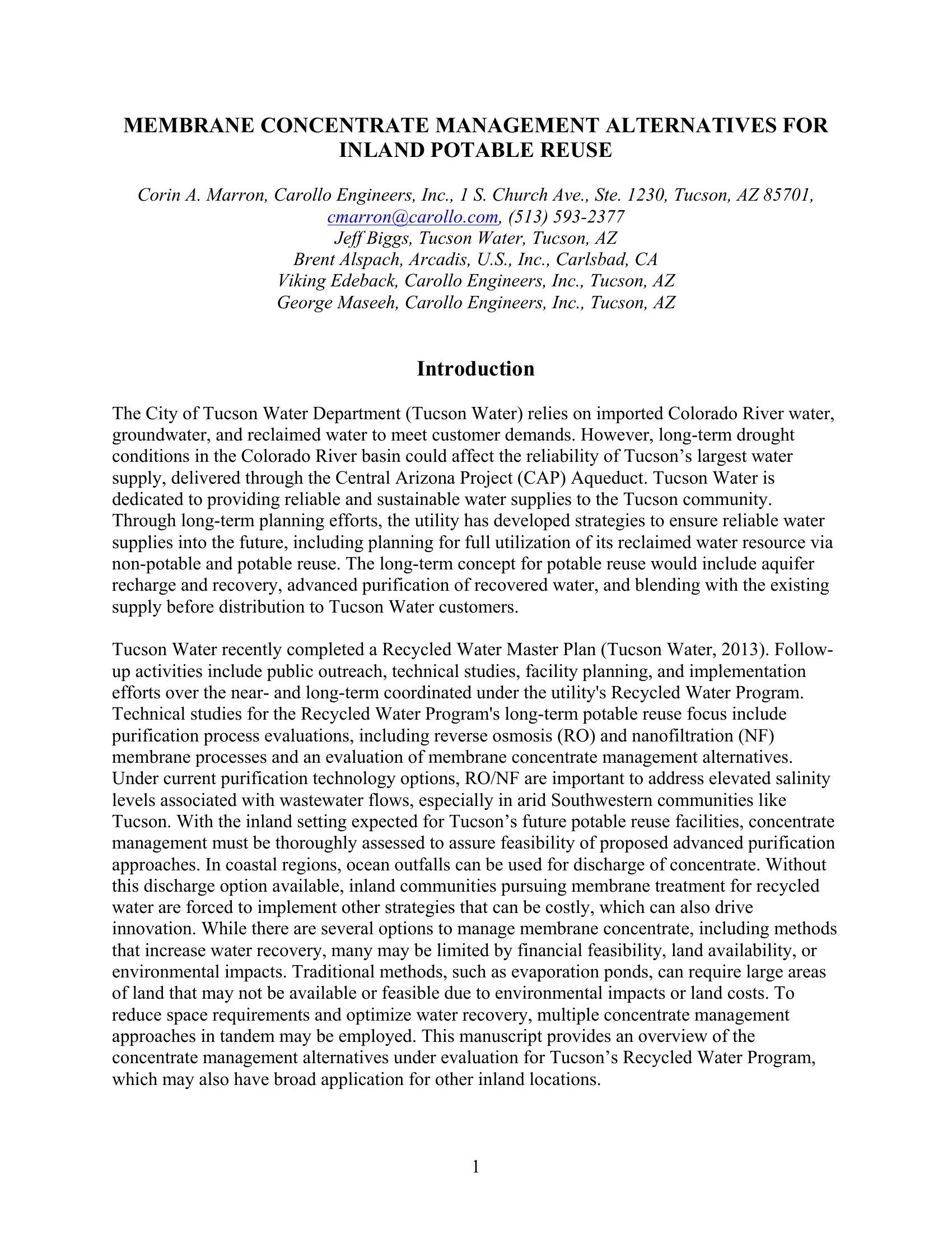 KeywordsMembrane, Concentrate, Zero Liquid Discharge, Nanofiltration, Reverse Osmosis, Reuse