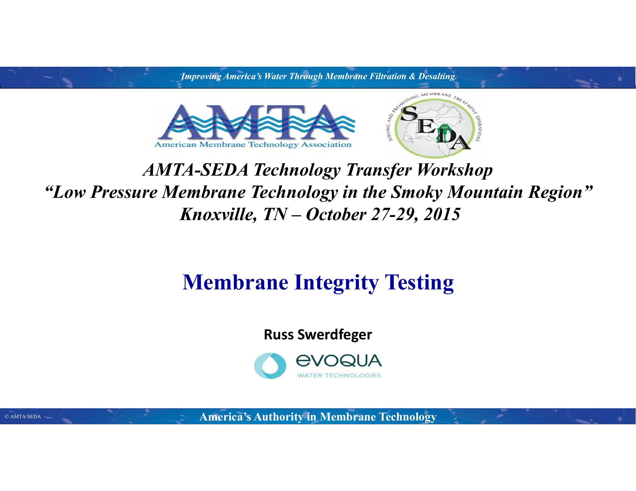 This session covers intergrity testing theory and application for hollo fiber membranes. Attendees will receive backgound of what intergrity is and how it applies to daily memrbane operations, along with startegies and approaches to manage membrane intergrity in a practical setting.