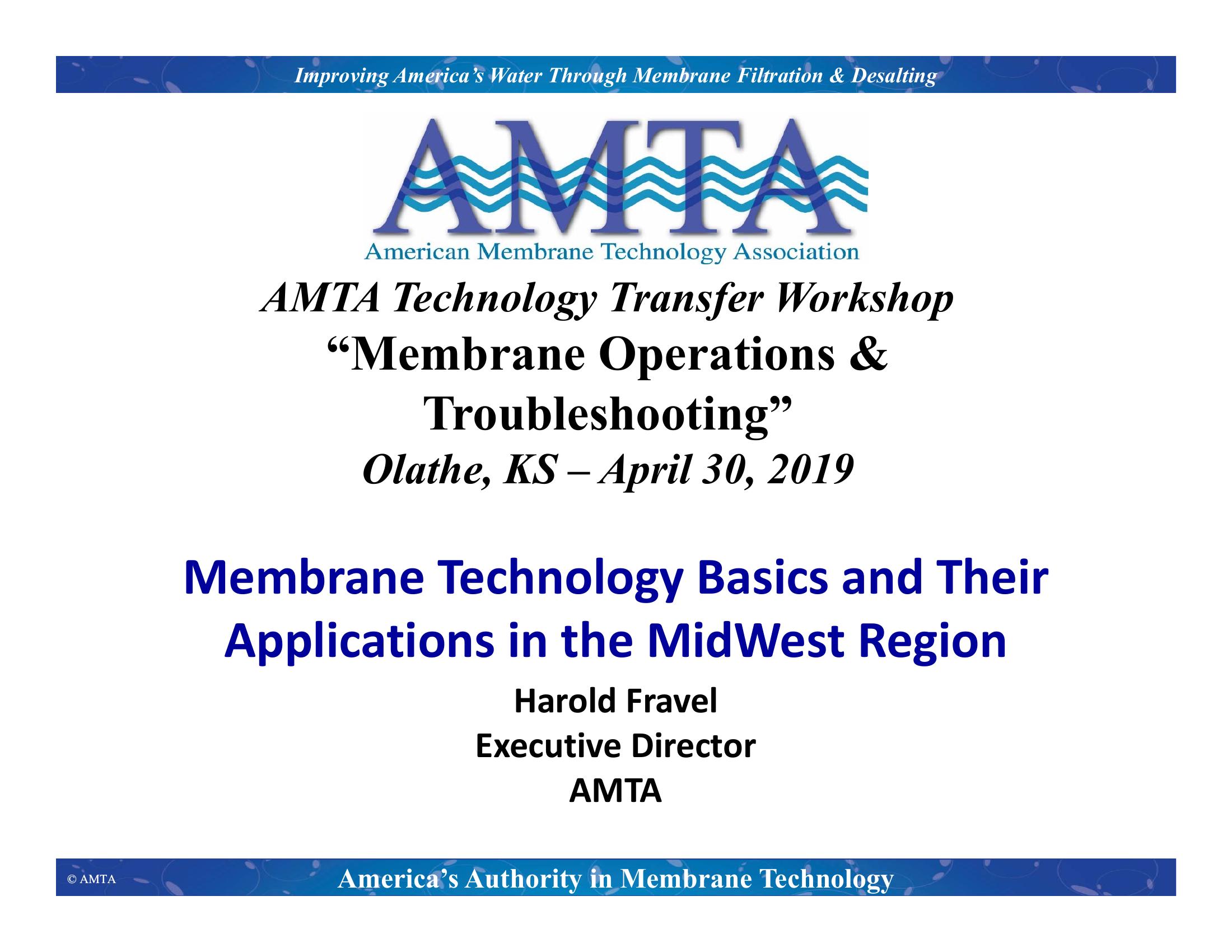 The presenations will provide a background on membrane processes for water treatment including RO, NF, MF and UF along with basic terminology and key points.