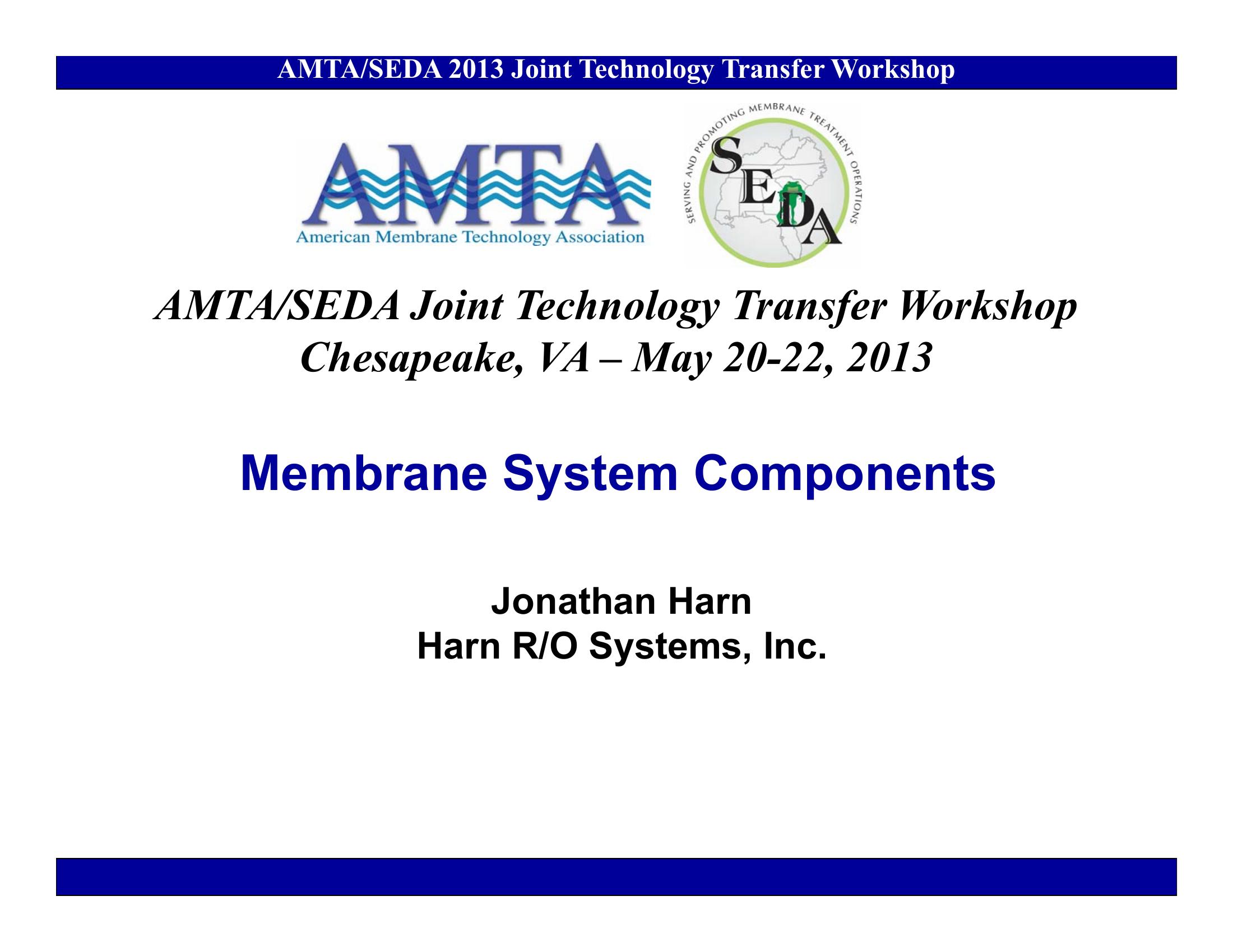 This PowerPoint presentation reviews the components of low pressure and high pressure membrane systems critical to system design.