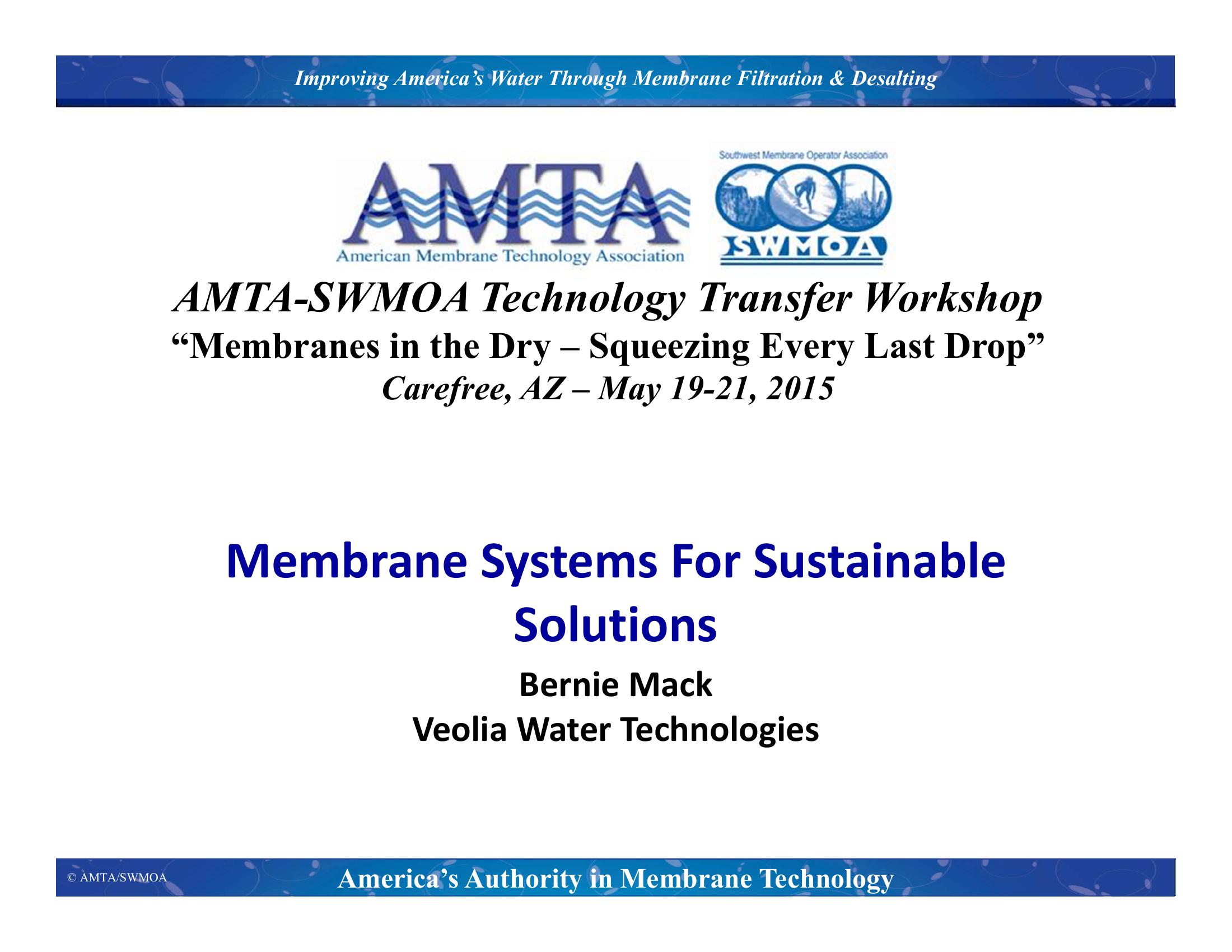 Membrane Systems For Sustainable Solutions