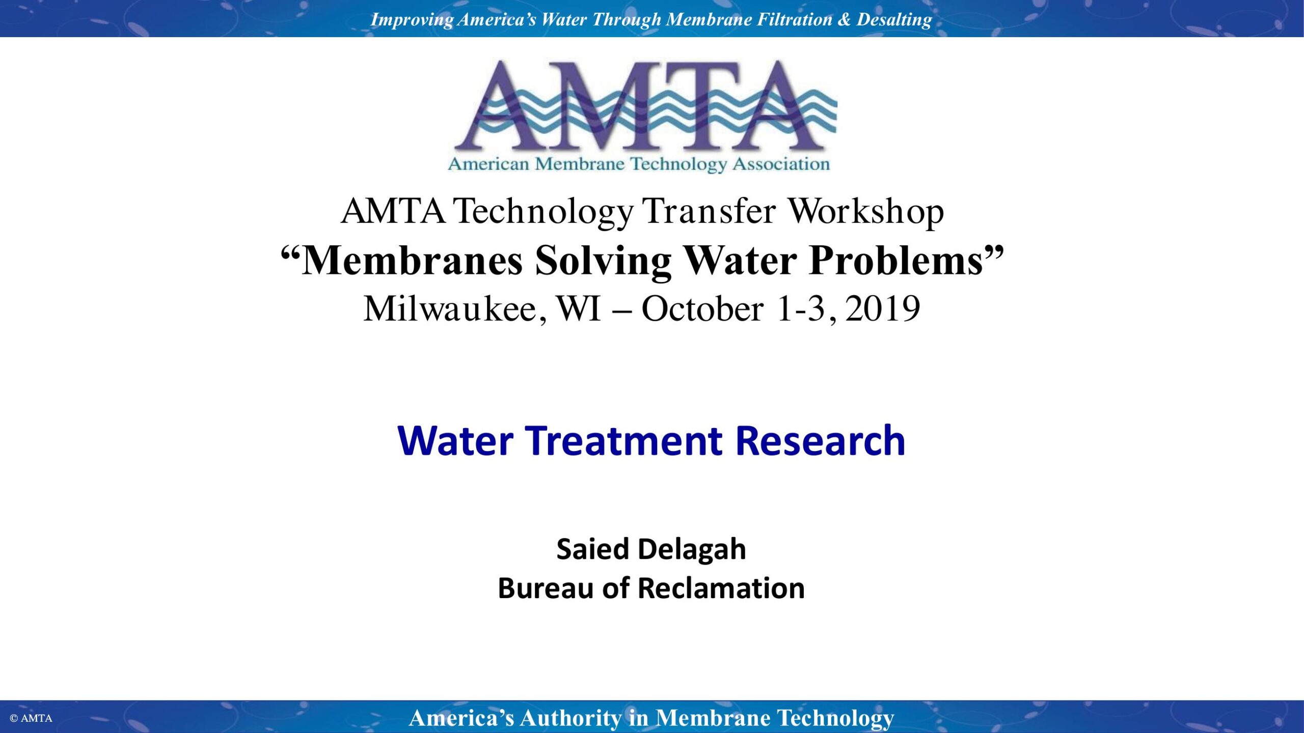 The USBR conducts and/or sponsors a long list of water supply and treatment research programs, including many university and post-doc fellowships. USBR’s membrane oriented research projects are described in the presentation.
