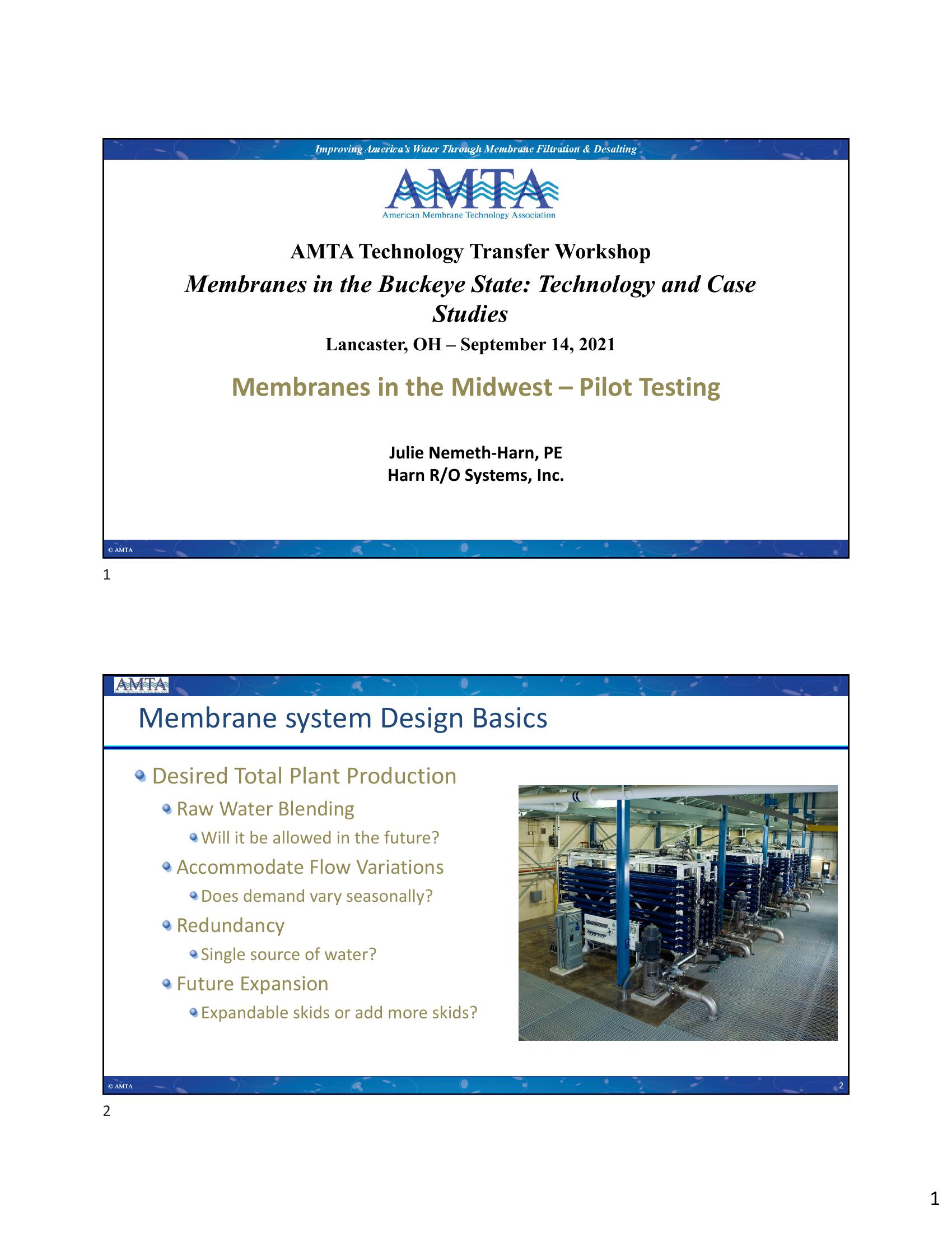 Membranes in the Midwest – Pilot Testing Considerations