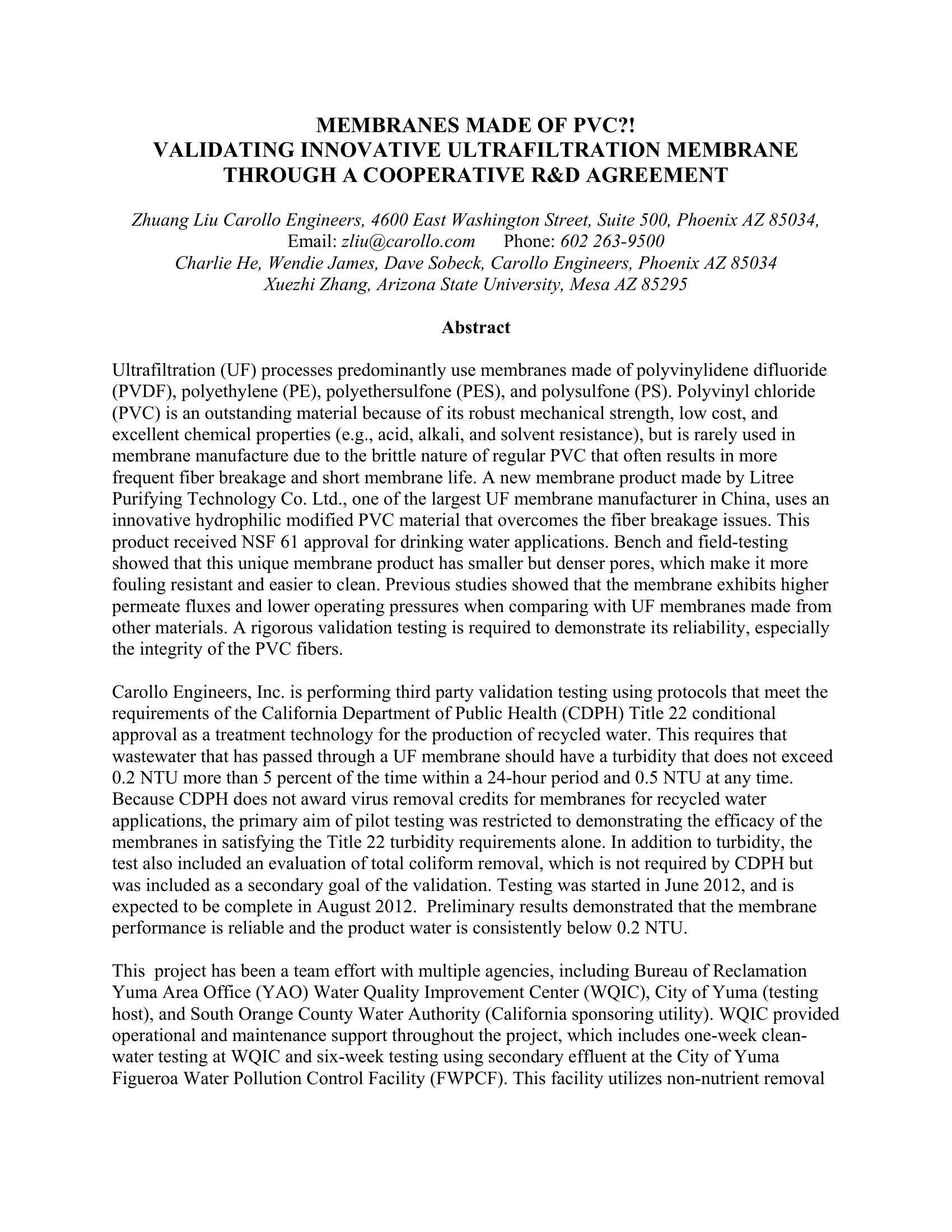 Membranes Made of PVC?! Validating Innovative Ultrafiltration Membrane through a Cooperative R&D Agreement