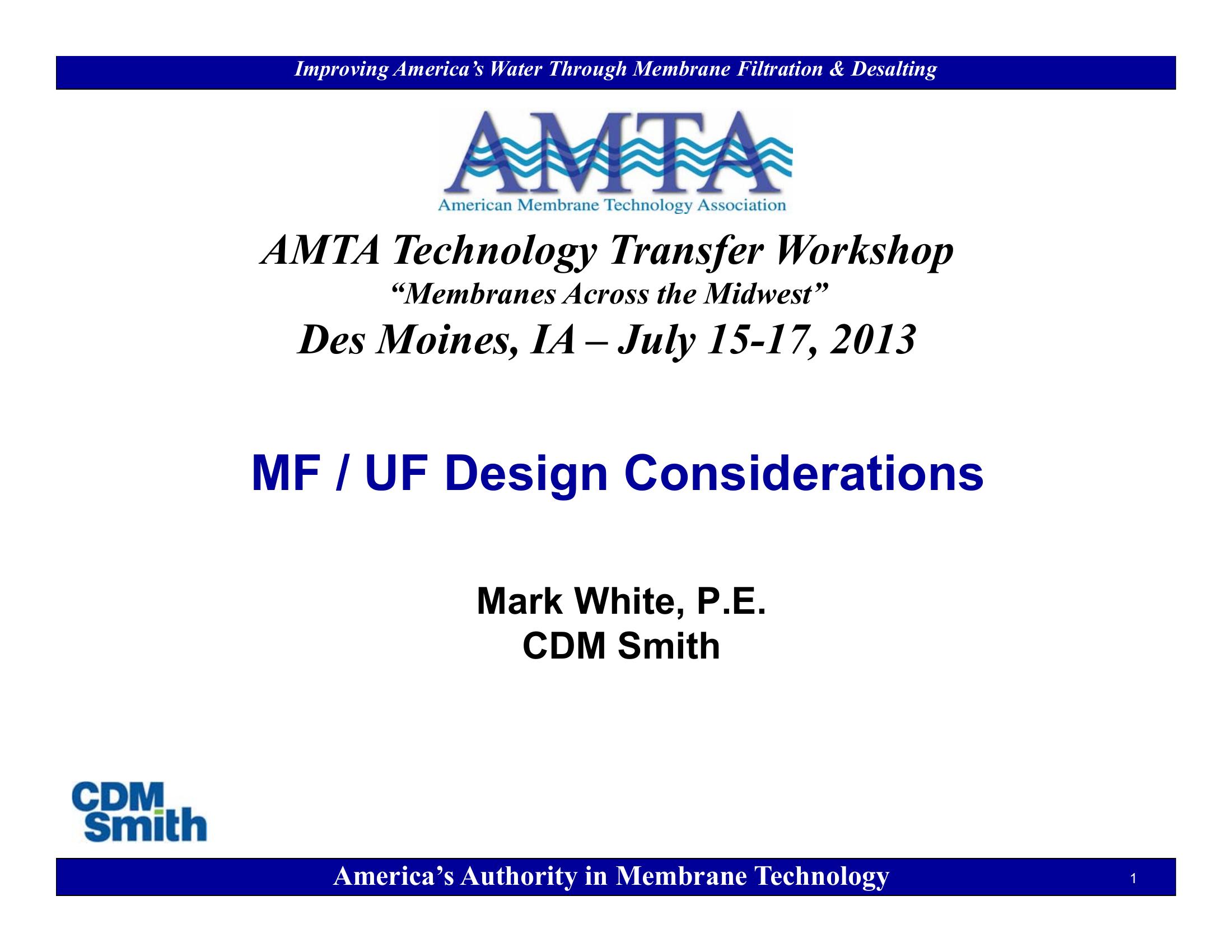 This PowerPoint discusses microfiltration and ultrafiltration plant design considerations.