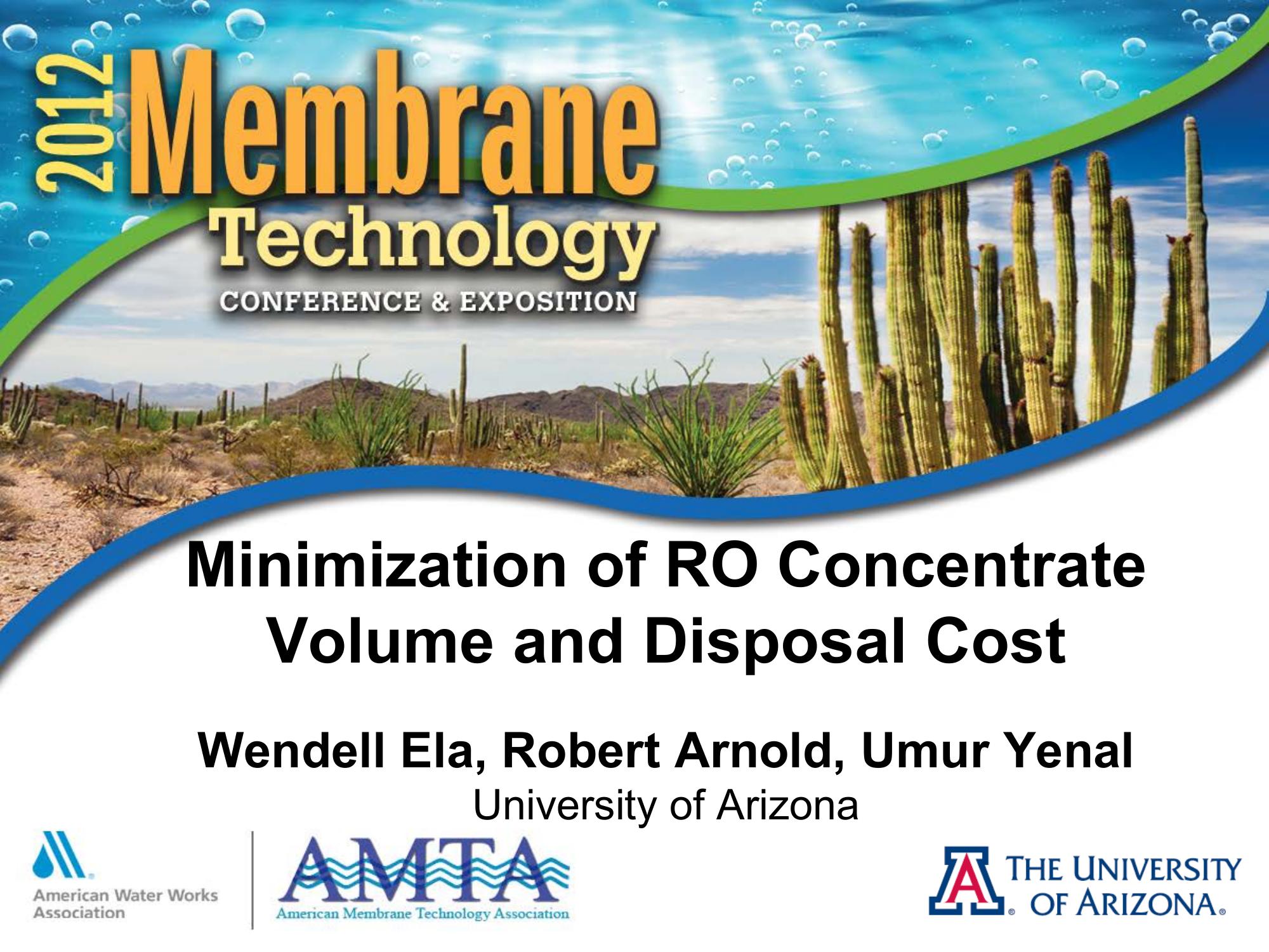 This presentation focuses on minimization of RO concentrate volume and disposal costs. An overview of sources of membrane scaling is provided and potential pre-treatment and post-treatment options are discussed to minimize concentrate and recover additional product water. This study concludes that it is feasible to increase recovery to greater than 95% because the decreased brine disposal cost justifies the additional treatment costs.