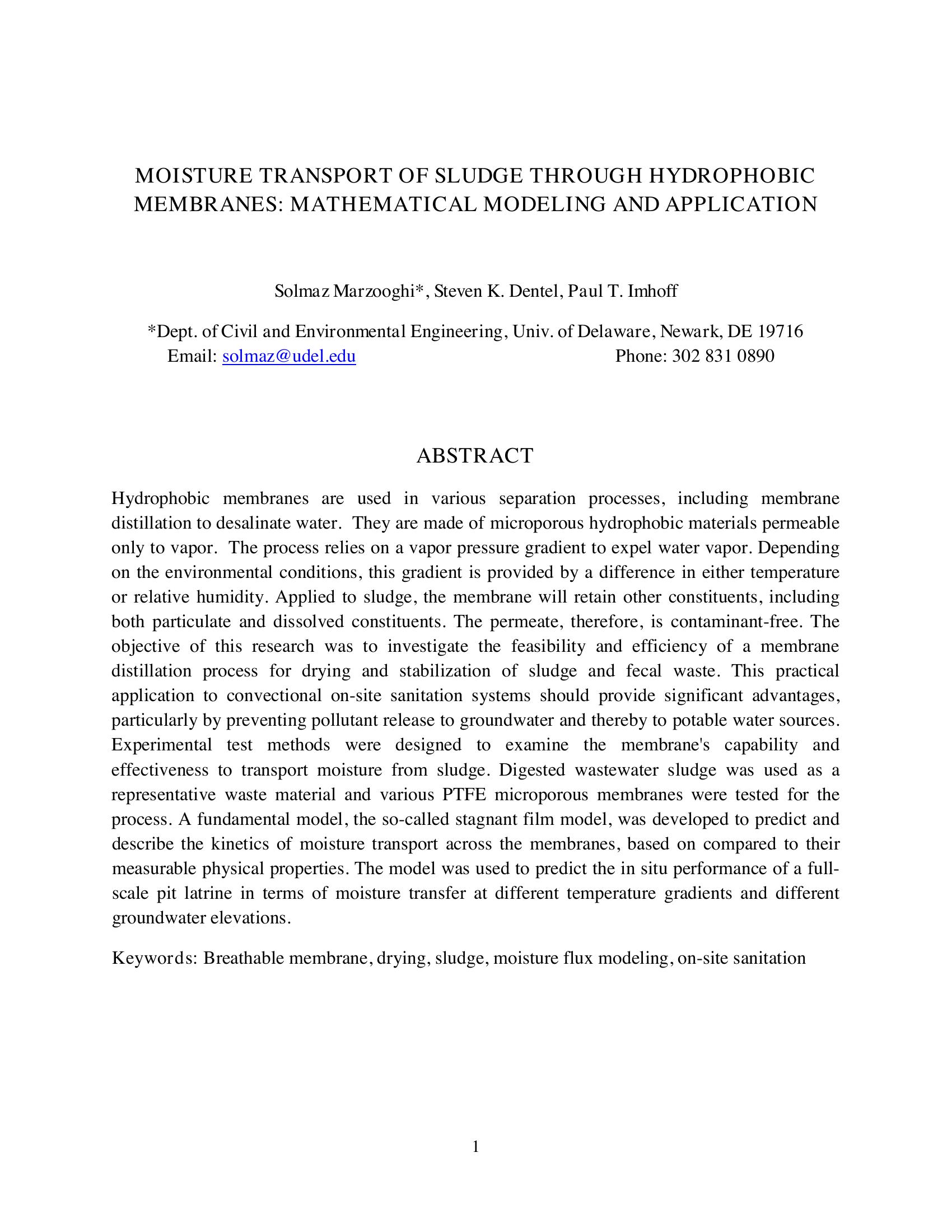 KeywordsBreathable membrane, drying, sludge, moisture flux modeling, on-site sanitation