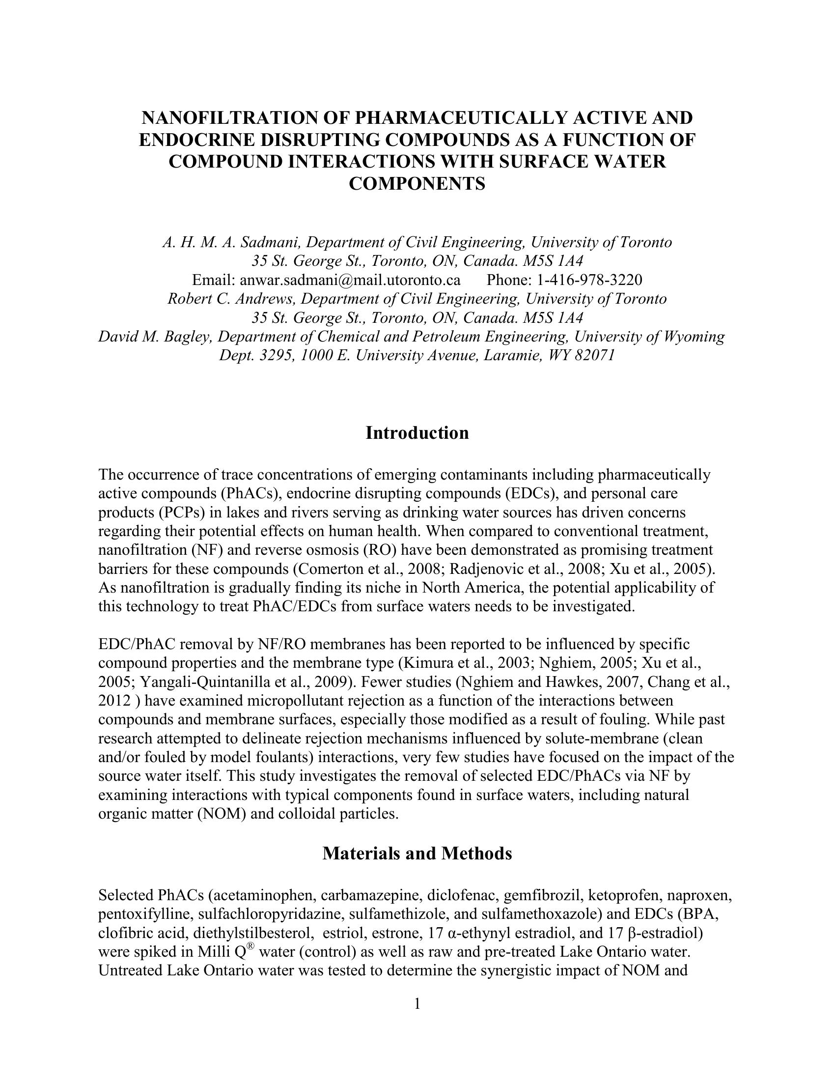 | Keywords | Nanofiltration, pharmaceutically active compound removal |