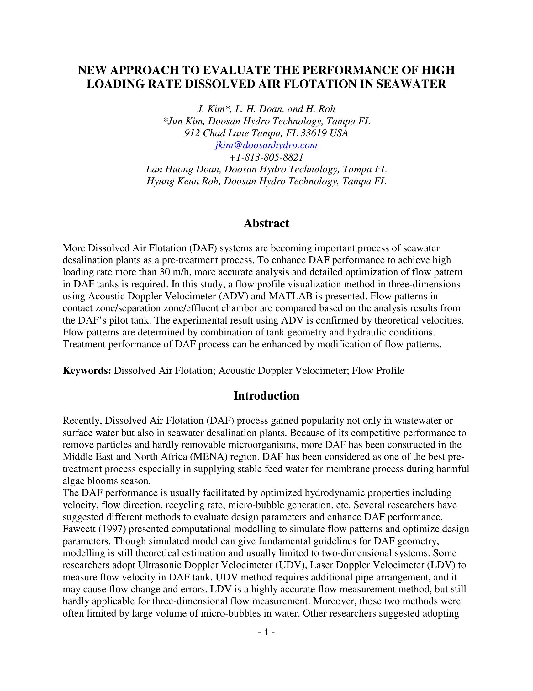 | Keywords | modeling, DAF, Seawater, pretreatment |