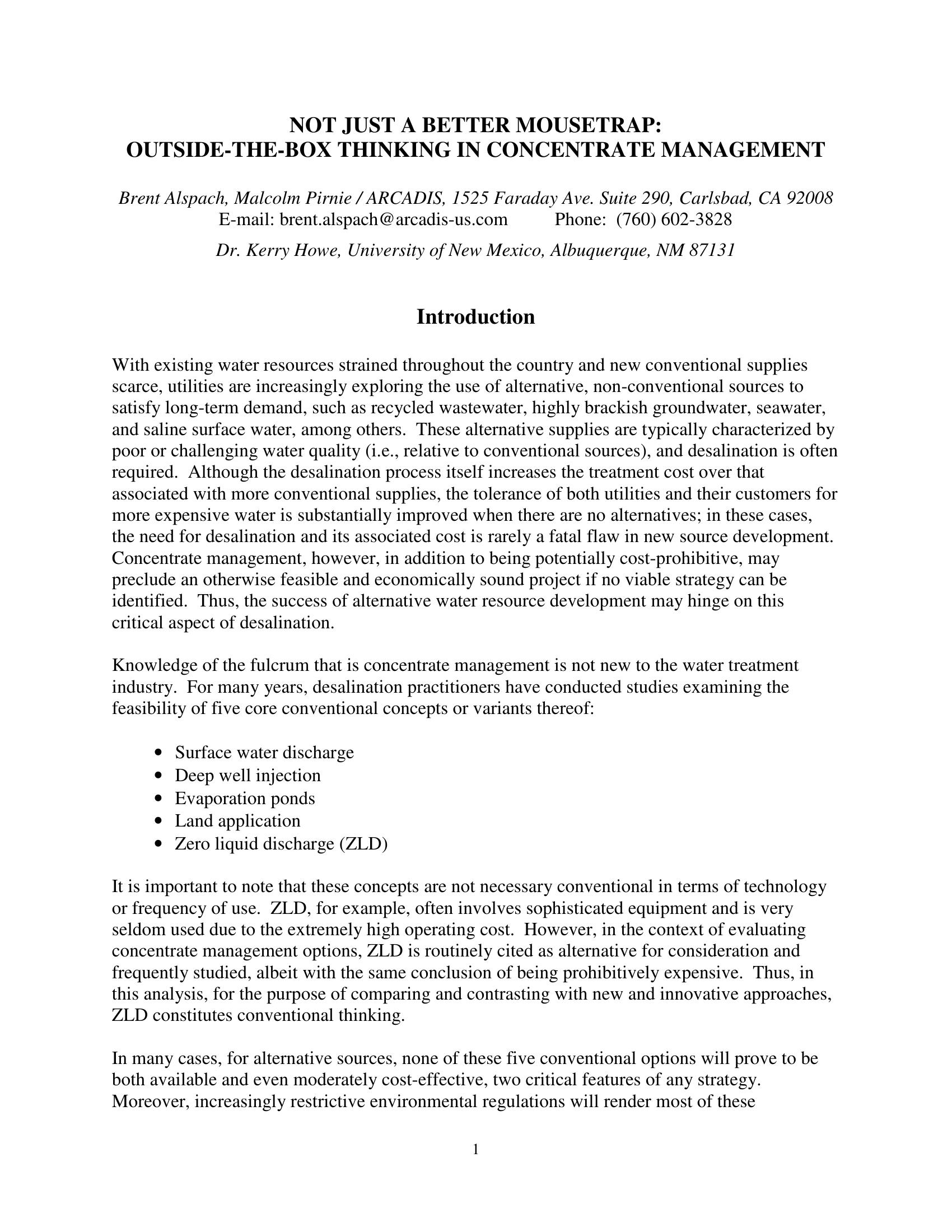 Keywordsrecycled wastewater concentrate management, highly brackish groundwater concentrate management, seawater concentrate management, saline surface water concentrate management