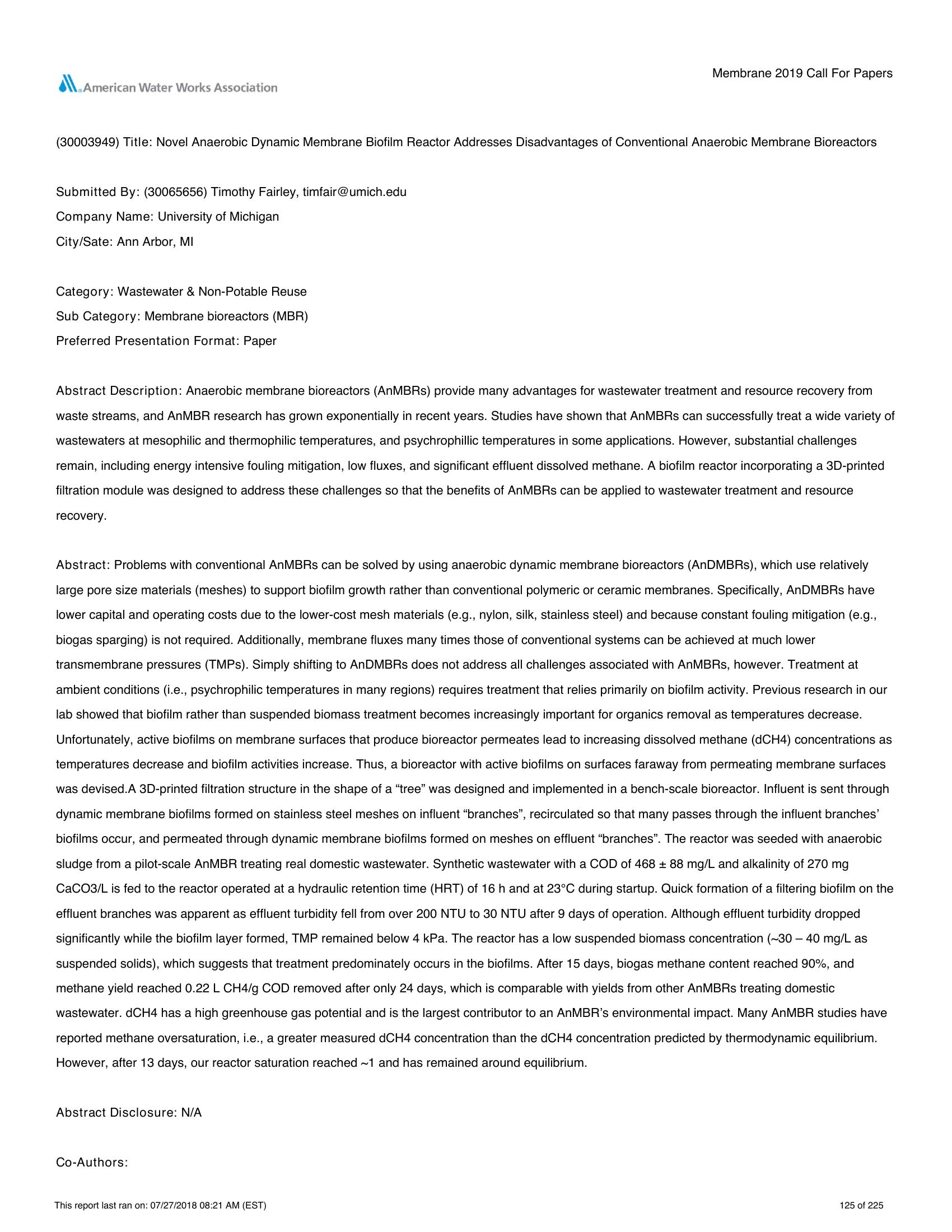 wastewaters at mesophilic and thermophilic temperatures, and psychrophillic temperatures in some applications. However, substantial challenges remain, including energy intensive fouling mitigation, low fluxes, and significant effluent dissolved methane. A biofilm reactor incorporating a 3D-printed filtration module was designed to address these challenges so that the benefits of AnMBRs can be applied to wastewater treatment and resource