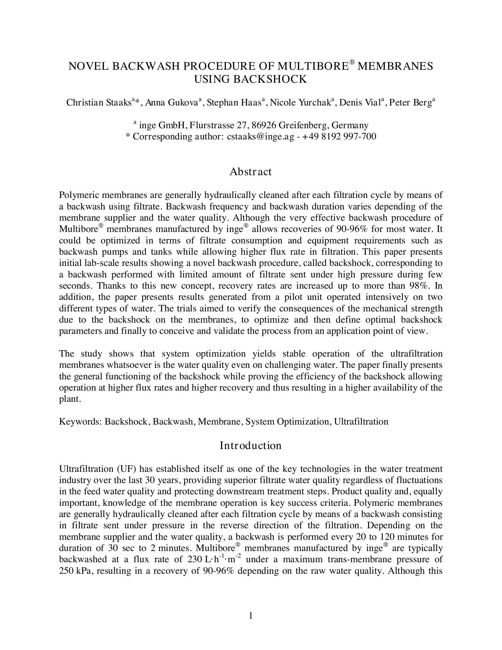 | Keywords | Backshock, Backwash, Membrane, System Optimization, Ultrafiltration |