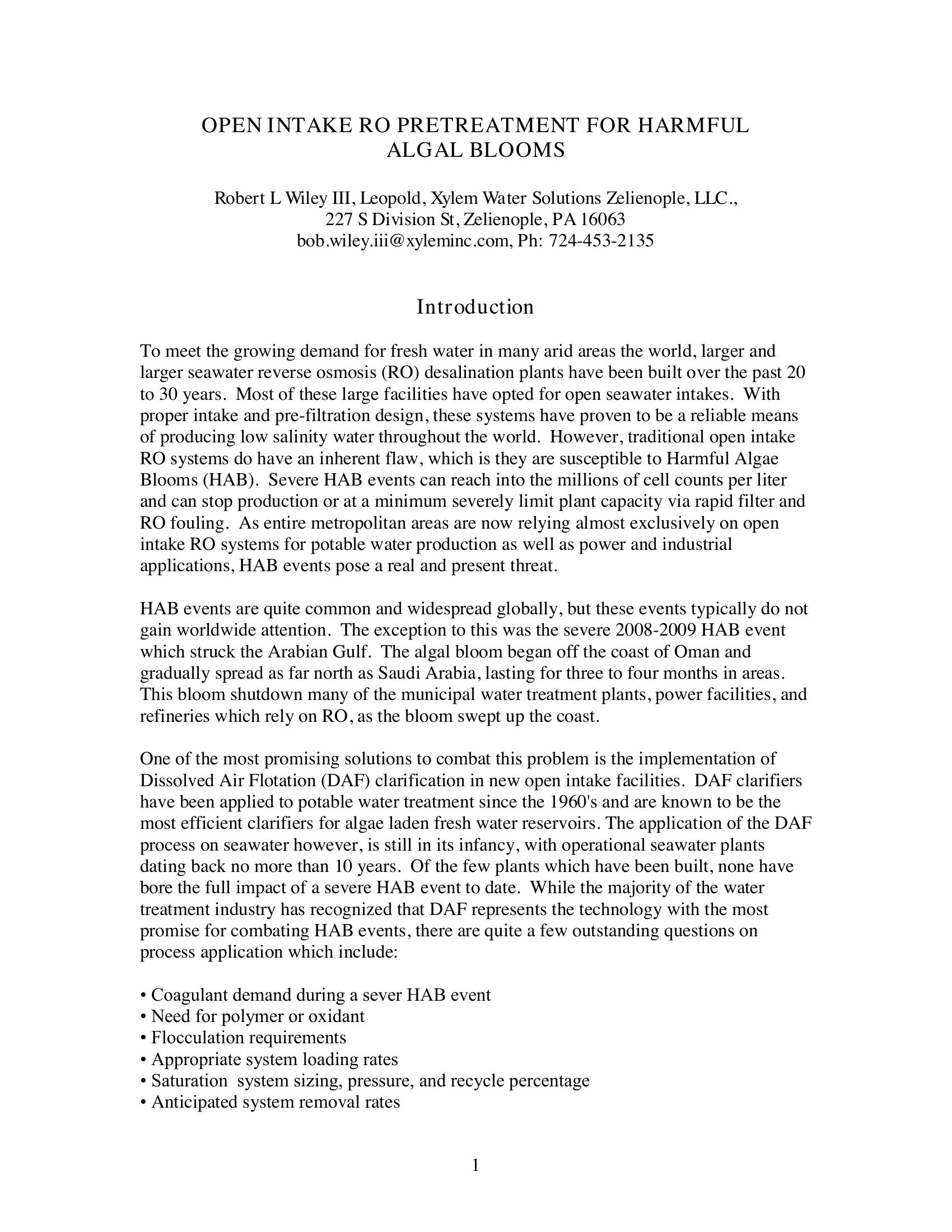| Keywords | Open Seawater Intake, RO Pretreatment, Harmful Algal Blooms |