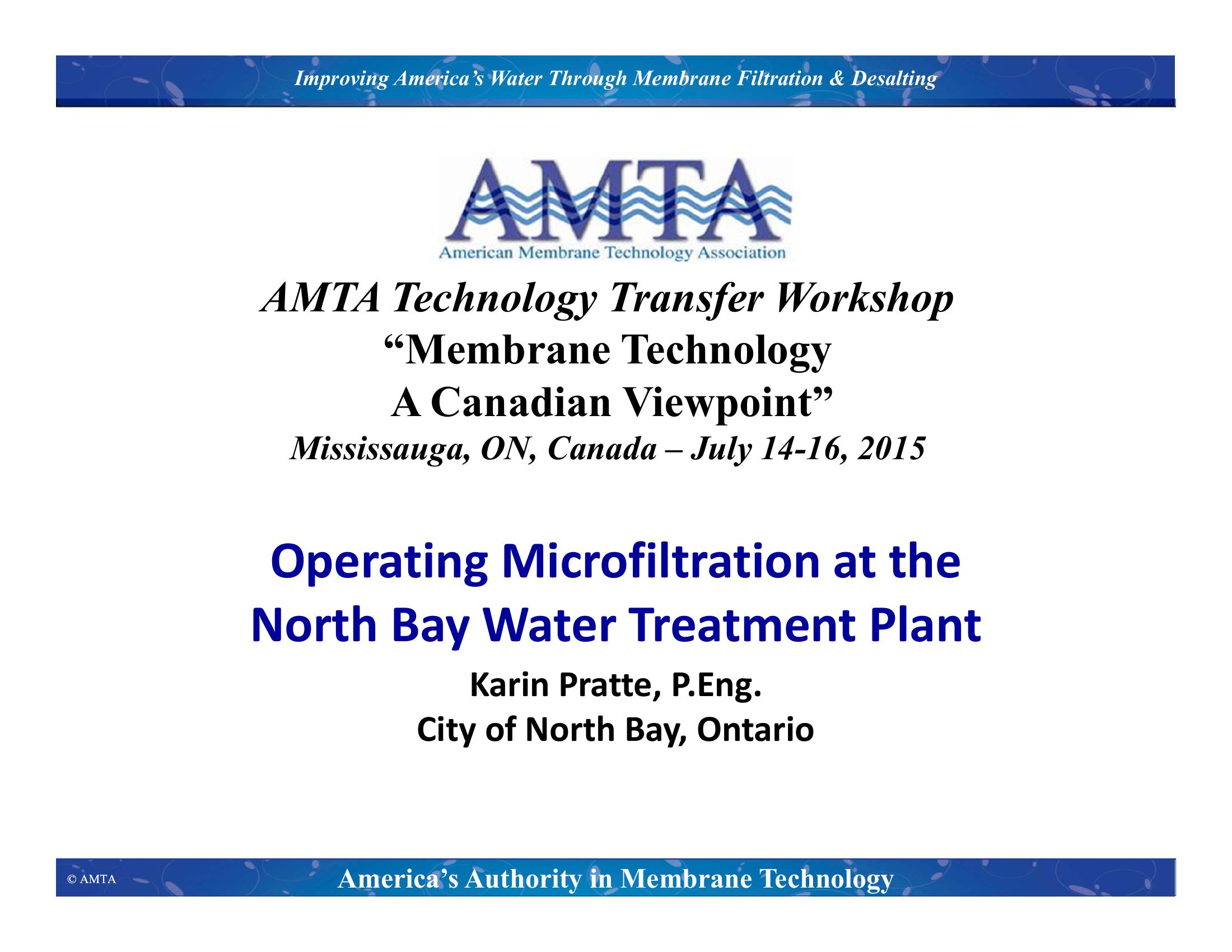 Operating Microfiltration at the North Bay Water Treatment Plant