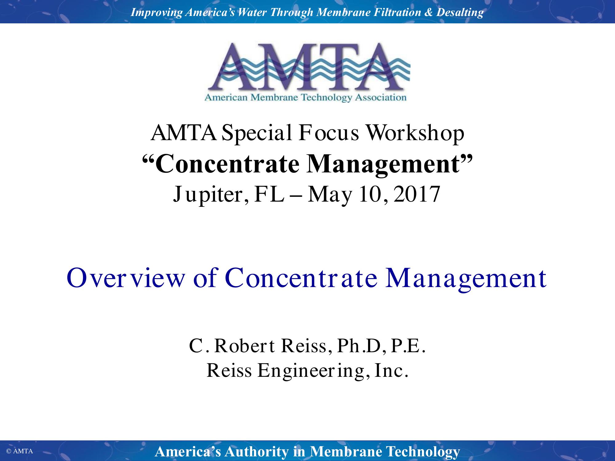 KeywordsConcentrate Management, Concentrate Disposal, Brine Disposal
