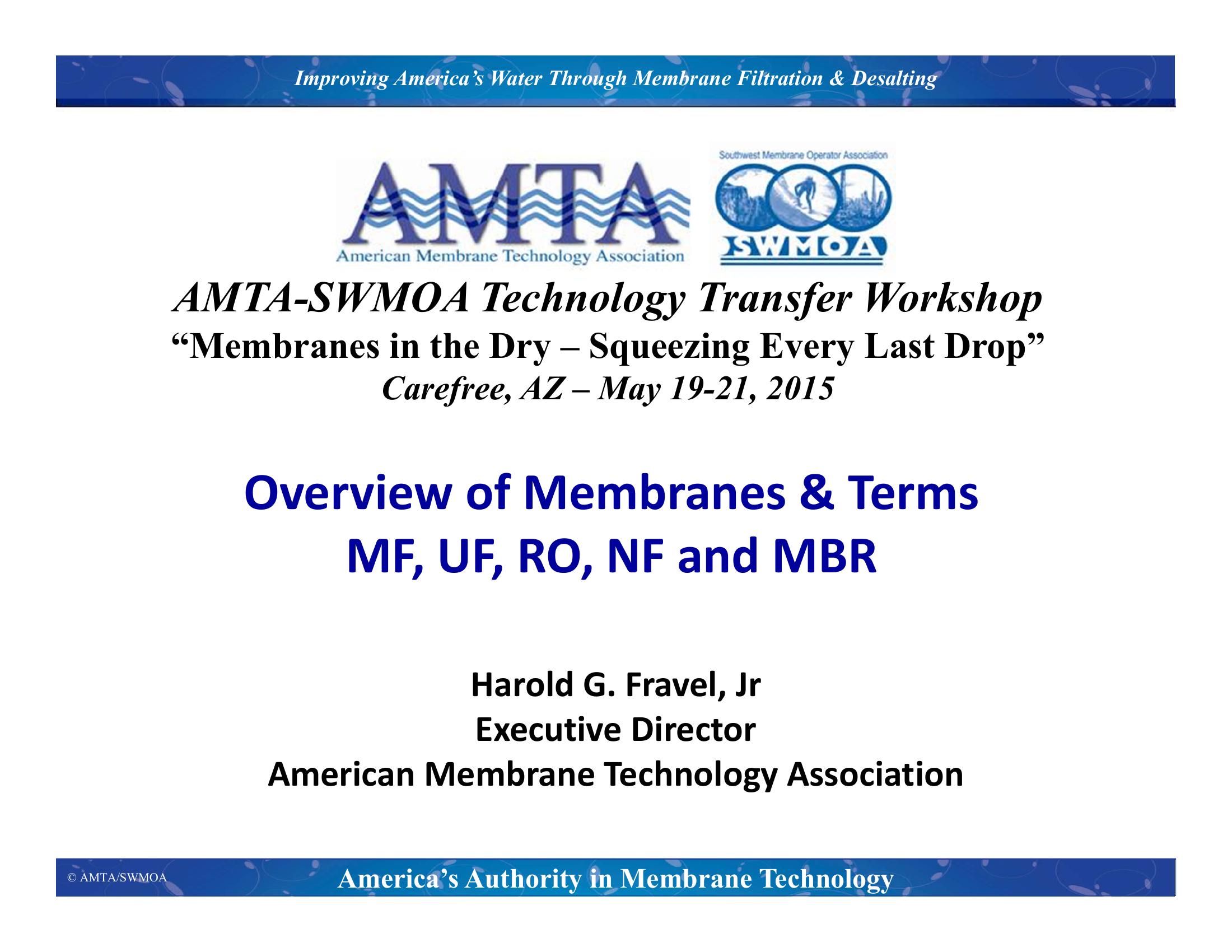 Overview of Membranes & Terms MF, UF, RO, NF and MBR