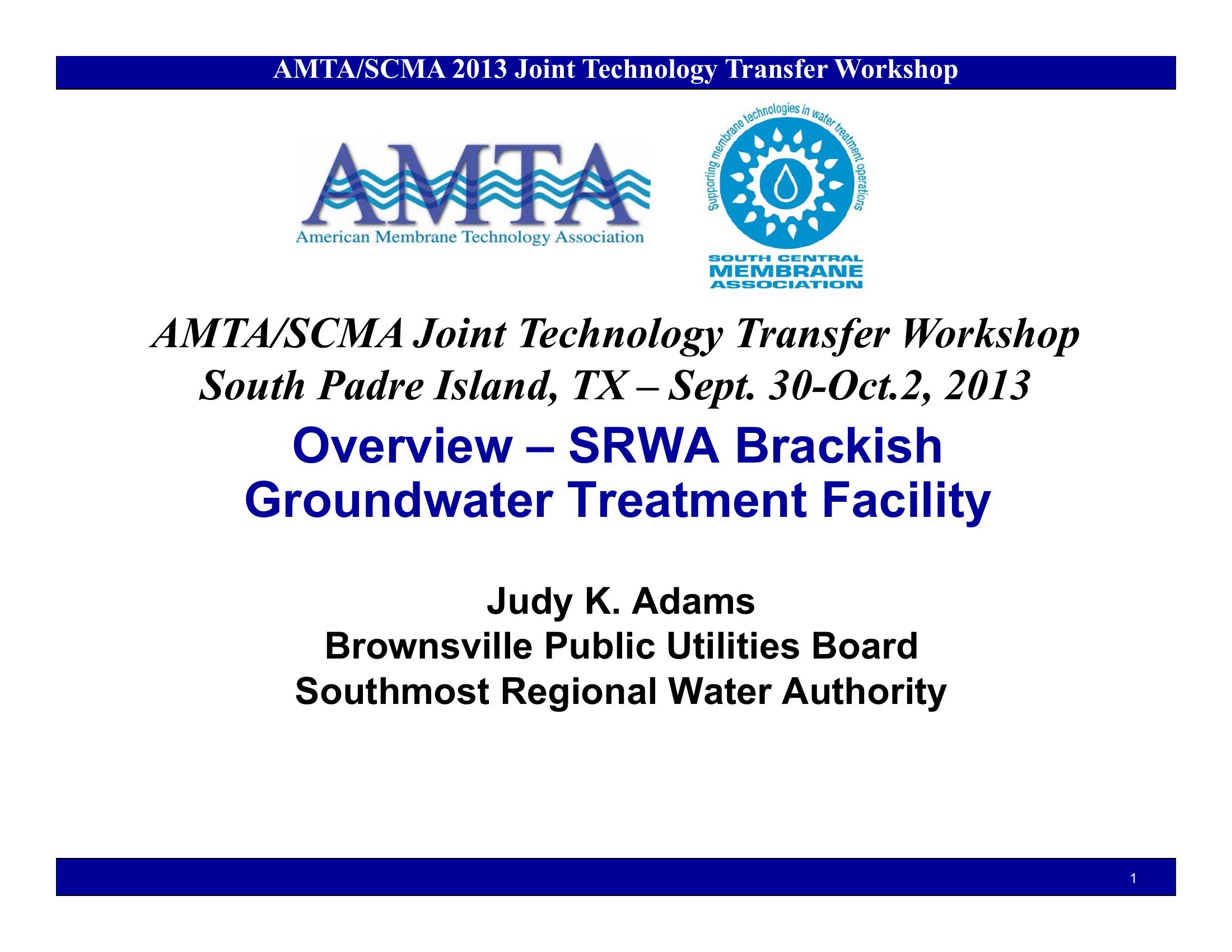 This PowerPoint gives an overview of the Southmost Regional Water Authority Brackish Groundwater Membrane Treatment Facility
