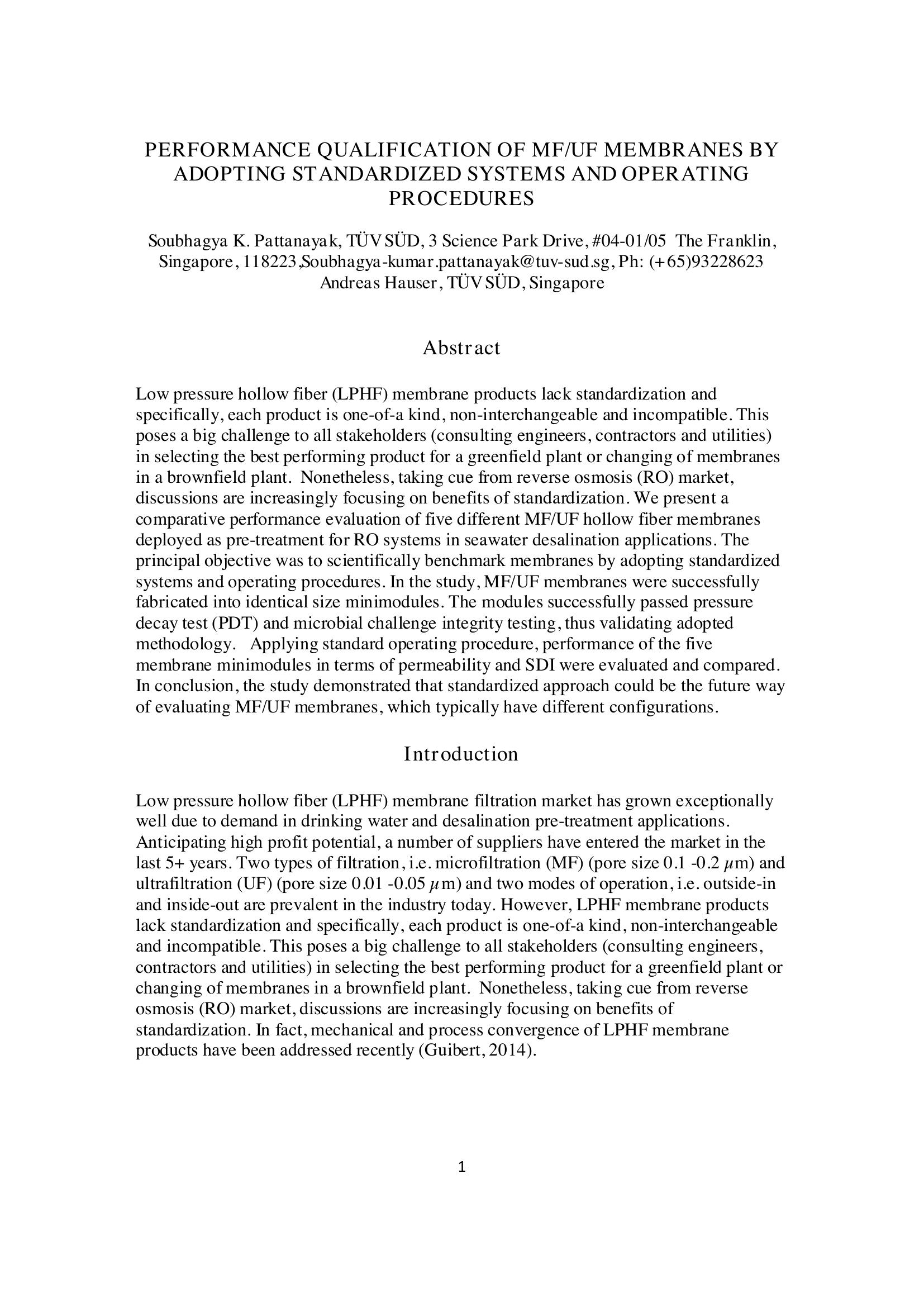 | Keywords | Low pressure hollow fiber (LPHF), Standardization, Interchangeable, seawater desalination |