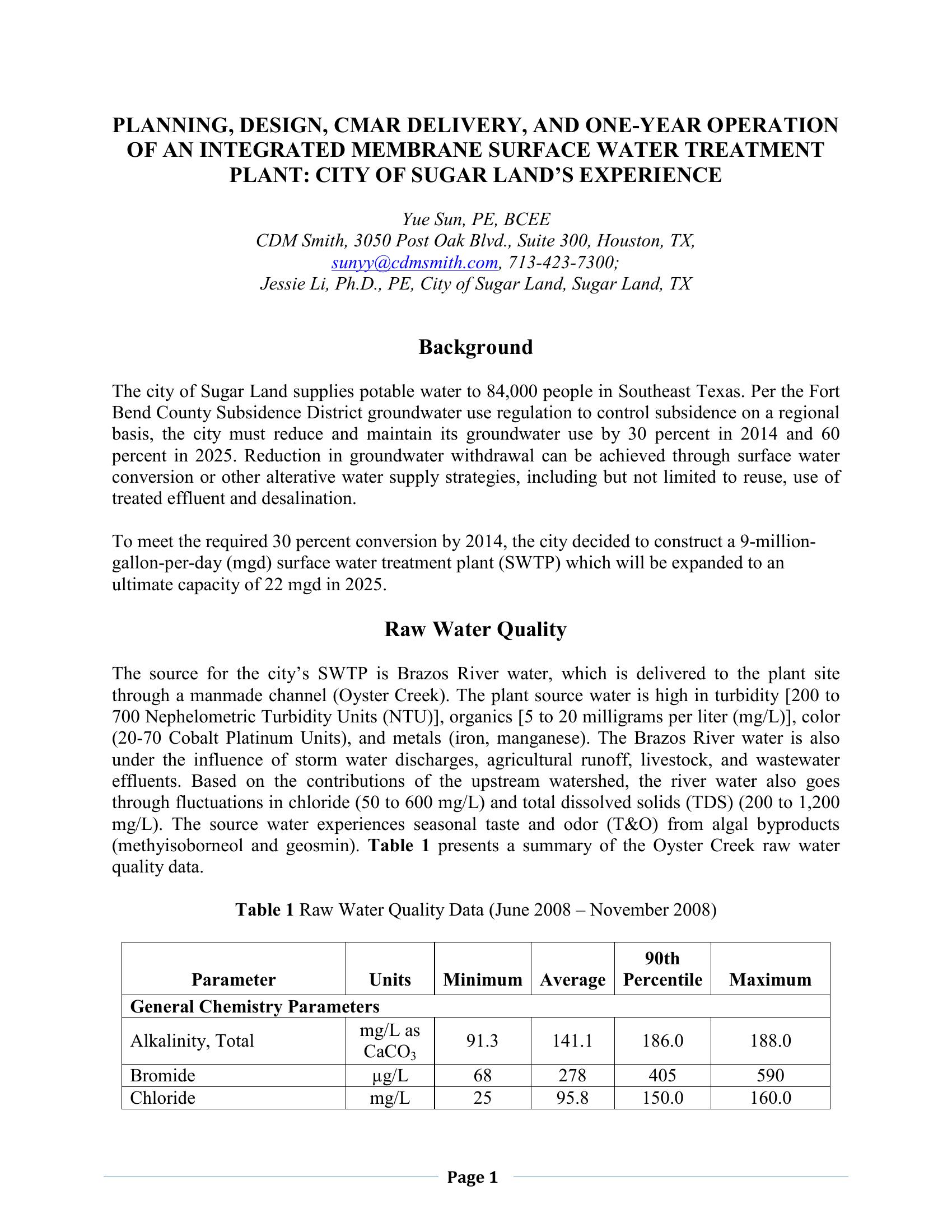 Planning, Design, CMAR Delivery, and One-Year Operation of An Integrated Membrane Surface Water Treatment Plant: City of Sugar Land?s Experience