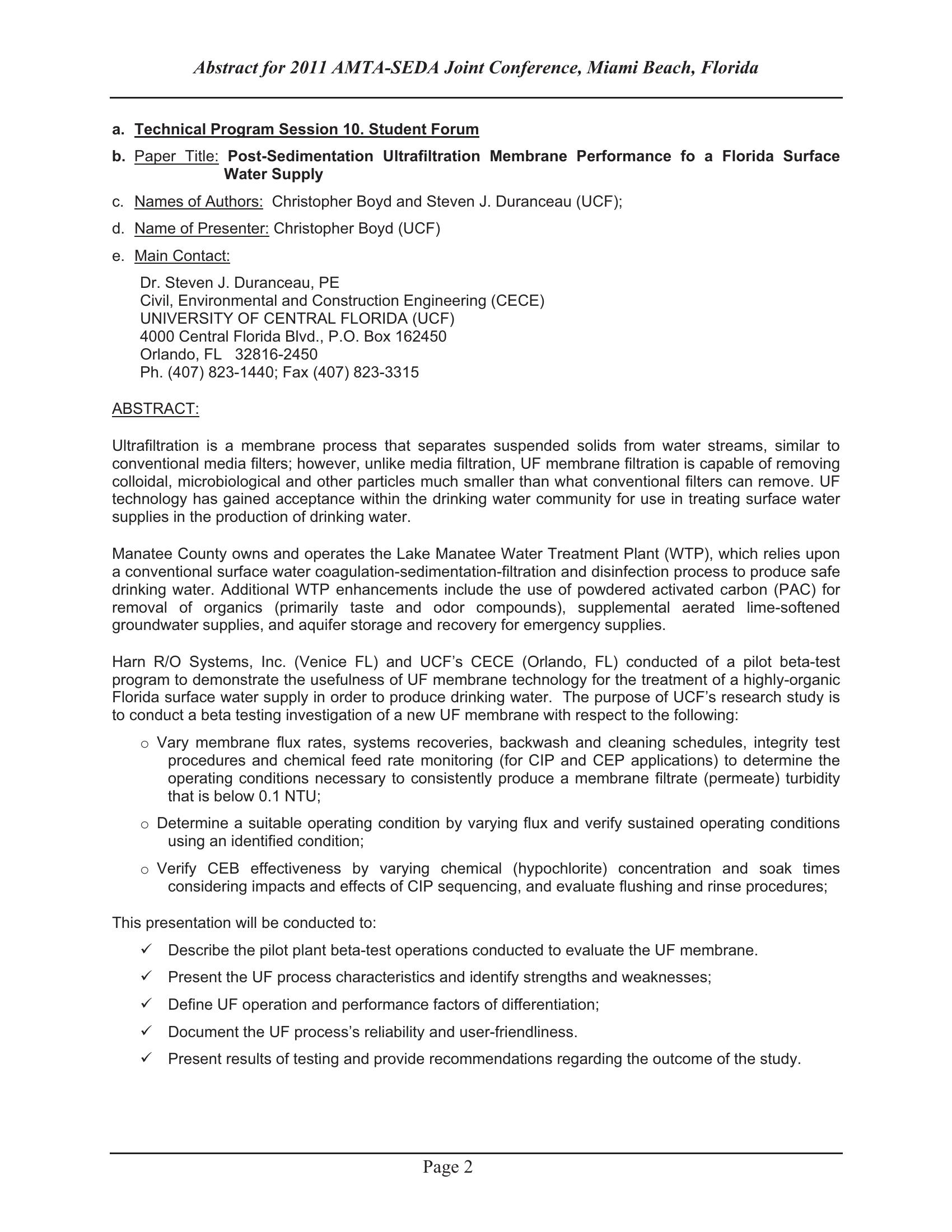 Keywordsultrafiltration, pilot testing, organic removal