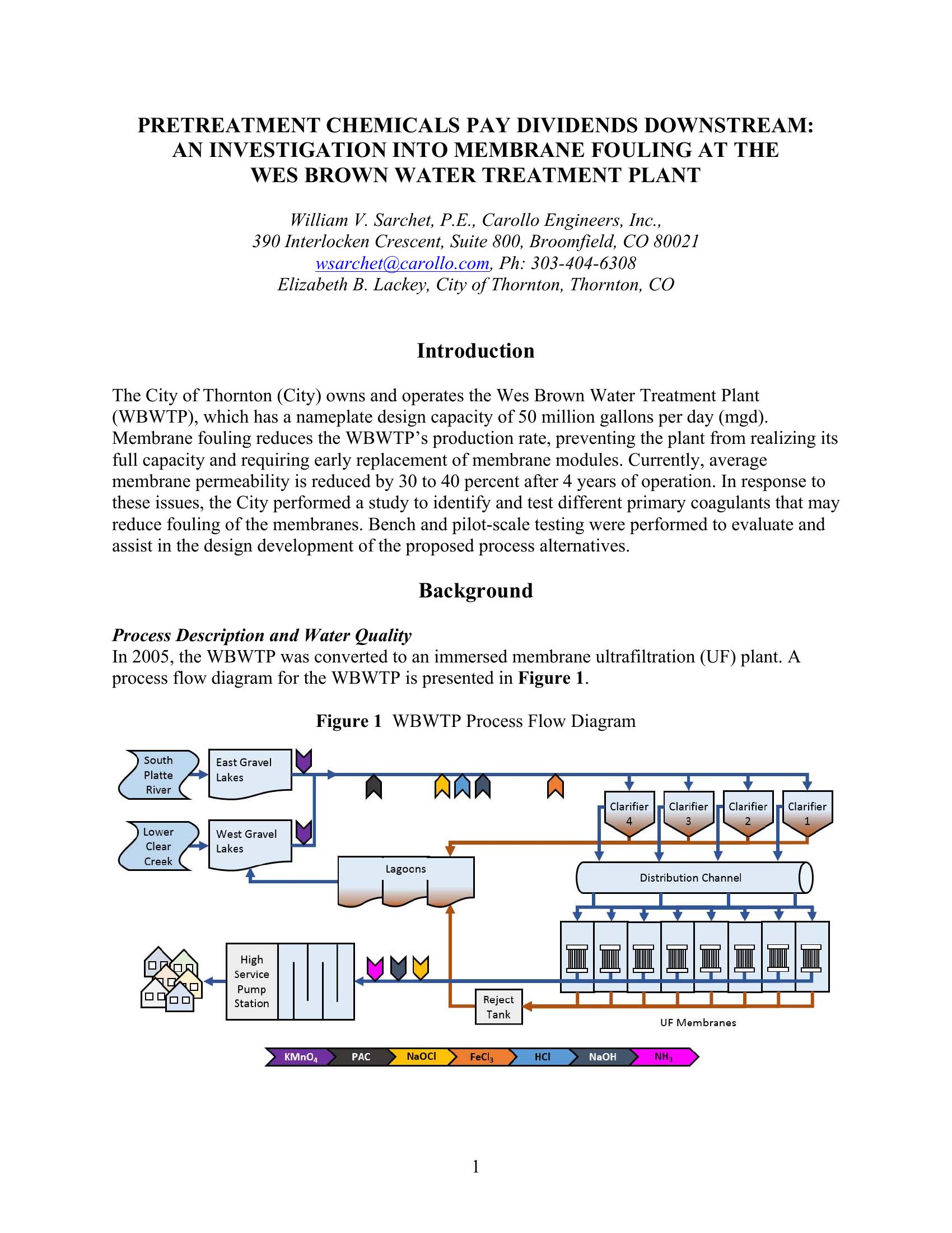 Pretreatment Chemicals Pay Dividends Downstream: An Investigation Into Membrane Fouling at the Wes Brown Water Treatment Plant