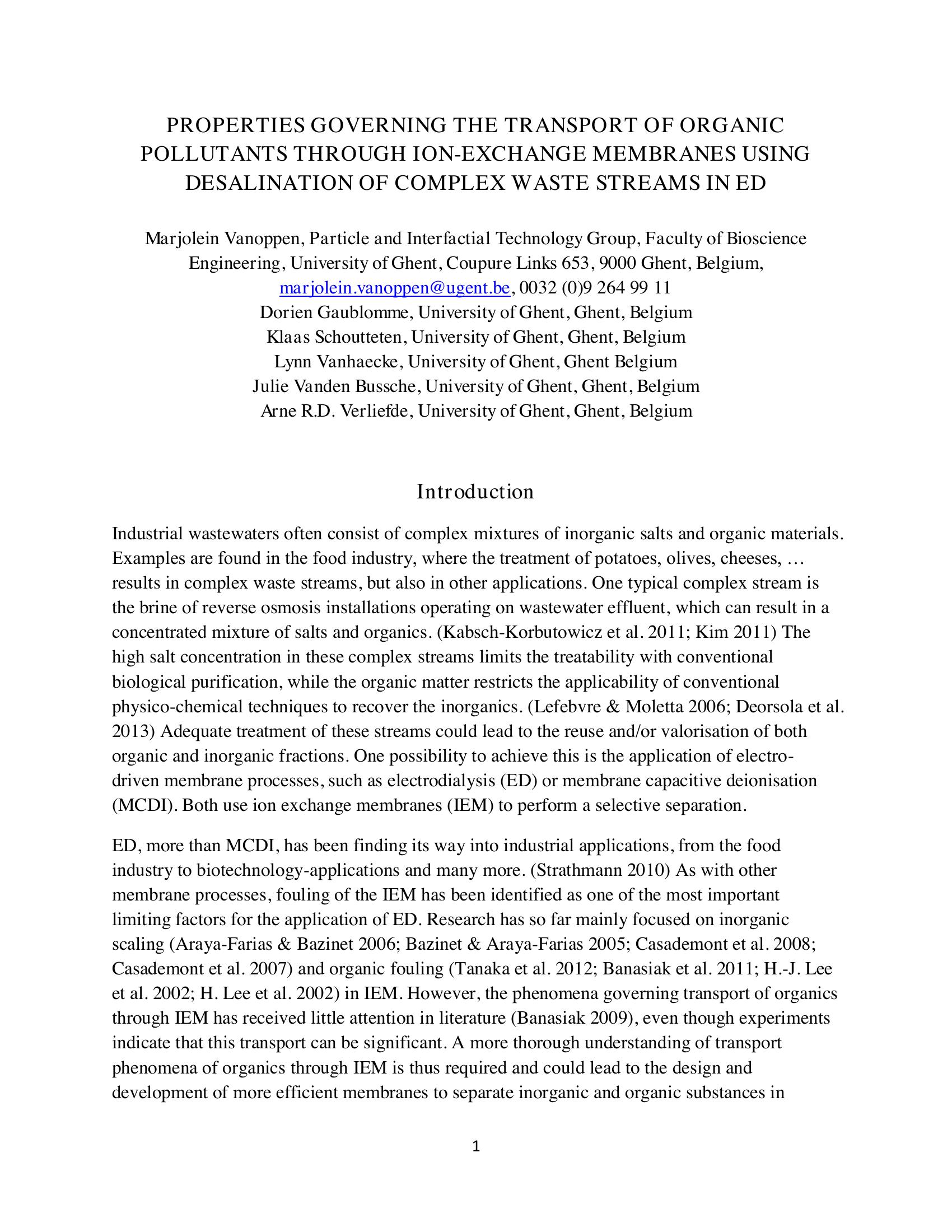 | Keywords | Trace Organic Pollutant, electrodialysis ED, food membranes |