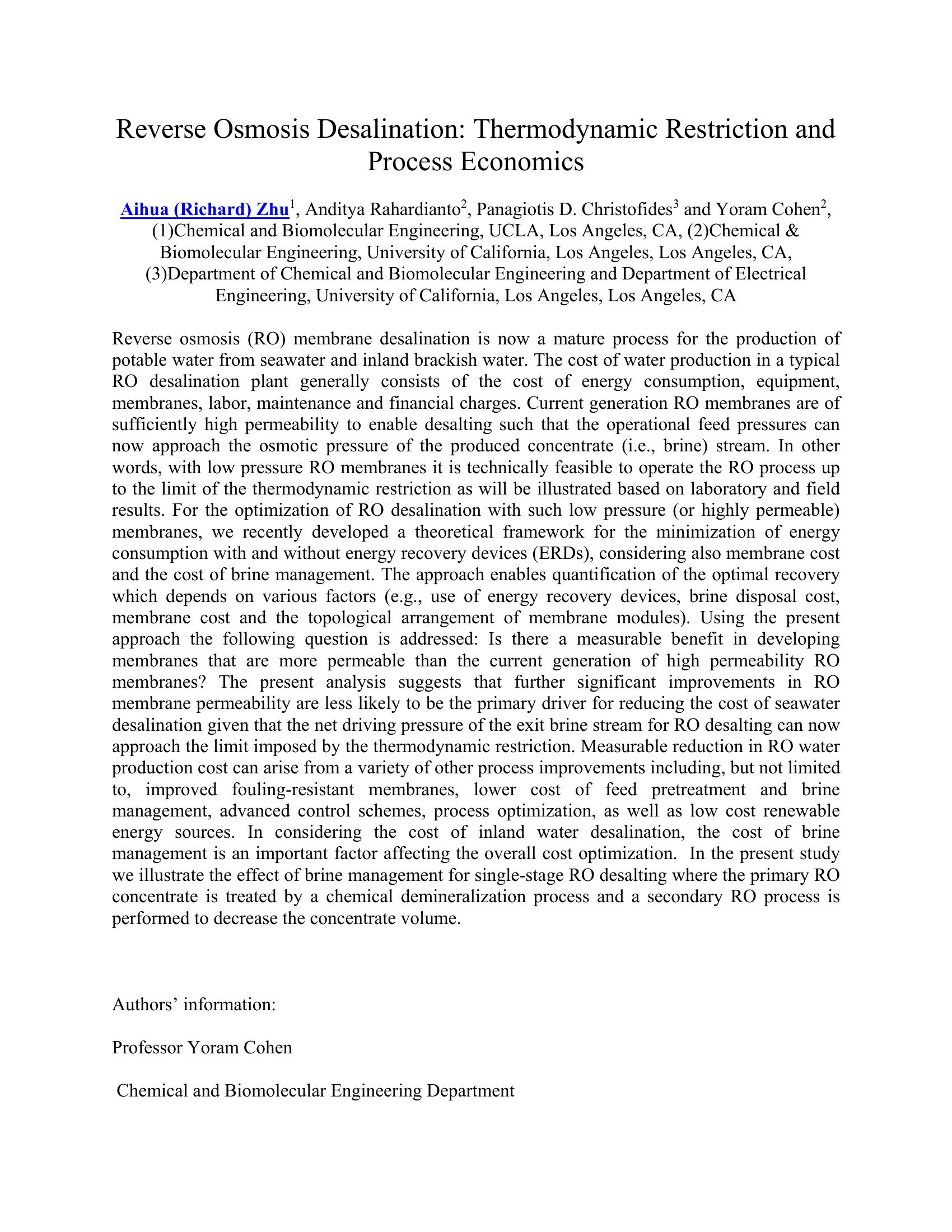 | Keywords | Reverse Osmosis, Economic, Modeling, Thermodynamic |