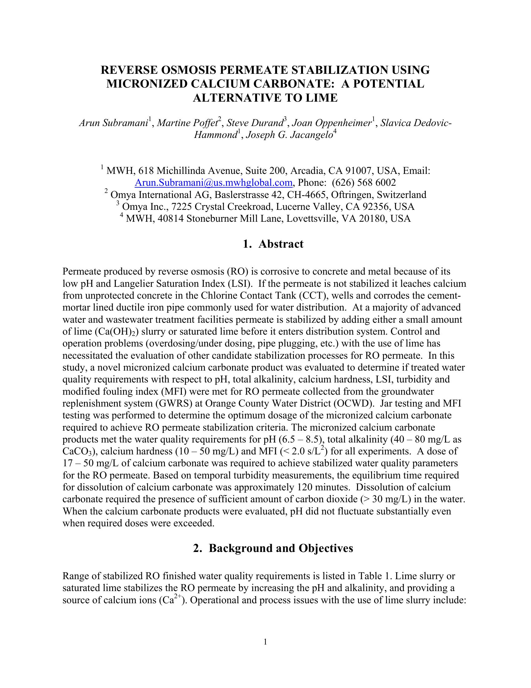 | Keywords | Reverse Osmosis, permeate corrositivity, permeate stabilization |