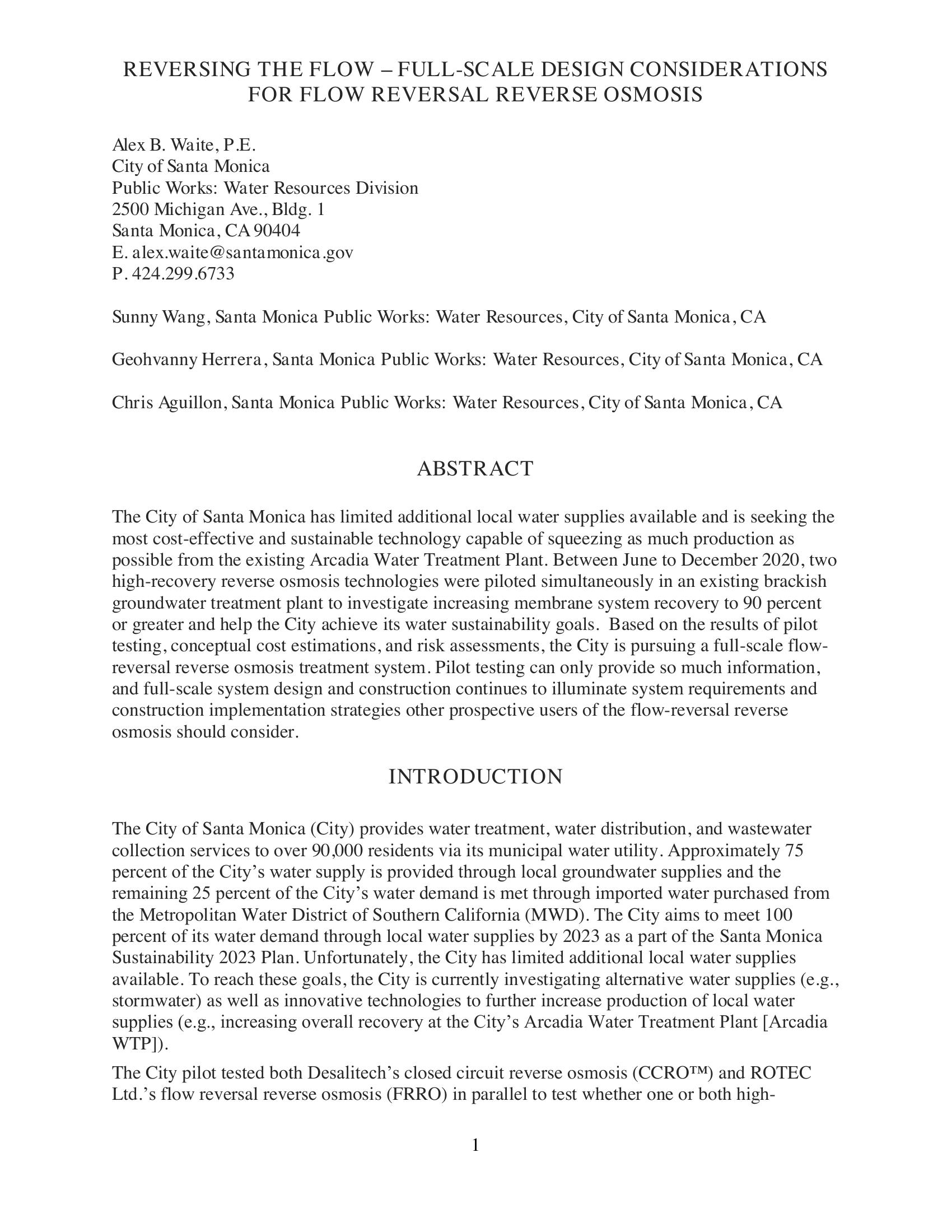 KeywordsFlow Reversal, Reverse Osmosis, Santa Monica