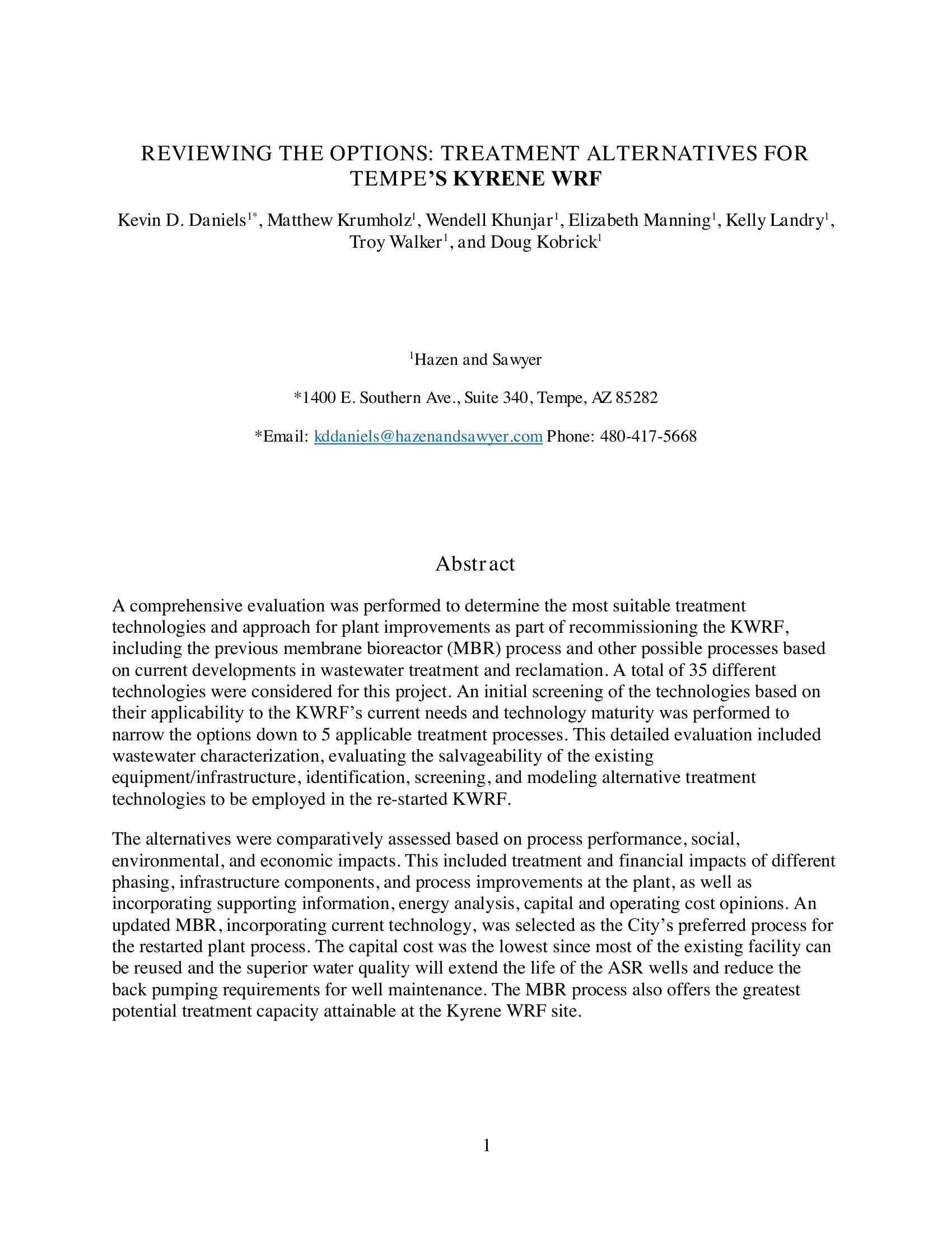 Reviewing the Options: Treatment Alternatives for Tempe’s Kyrene WRF