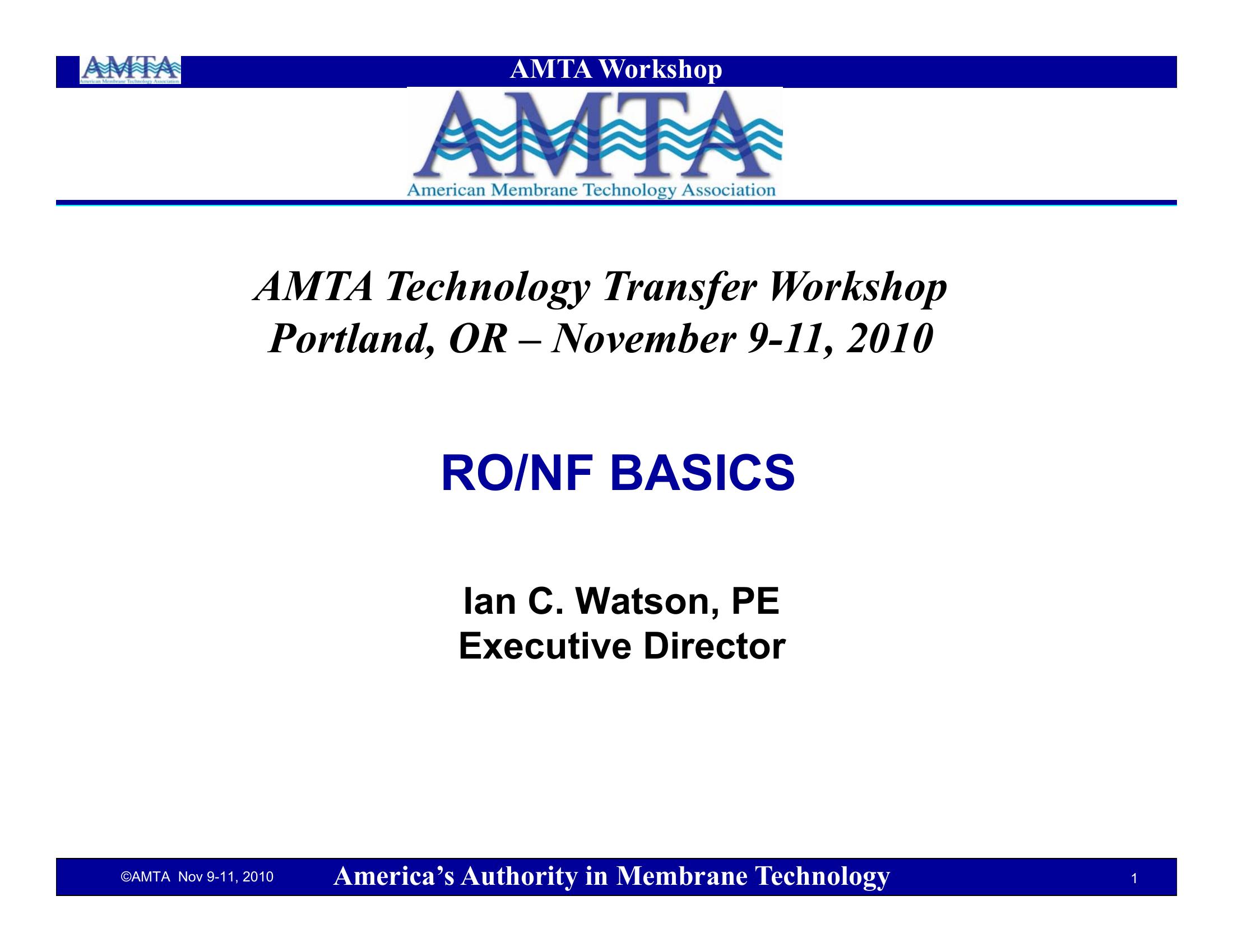 Reverse Osmosis (RO) and Nanofiltration (NF) basics and a comparison between the two membrane processes. Introduction to technical terms used in describing these two membrane processes and characterizing performance.