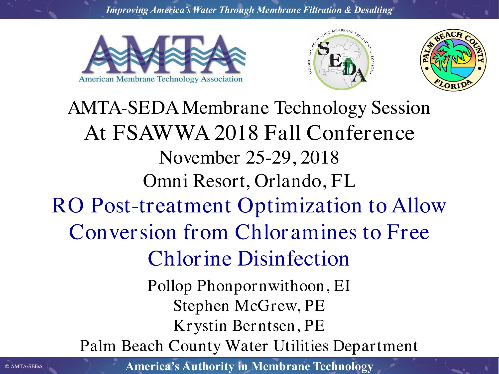 RO Post-treatment Optimization to Allow Conversion from Chloramines to Free Chlorine Disinfection