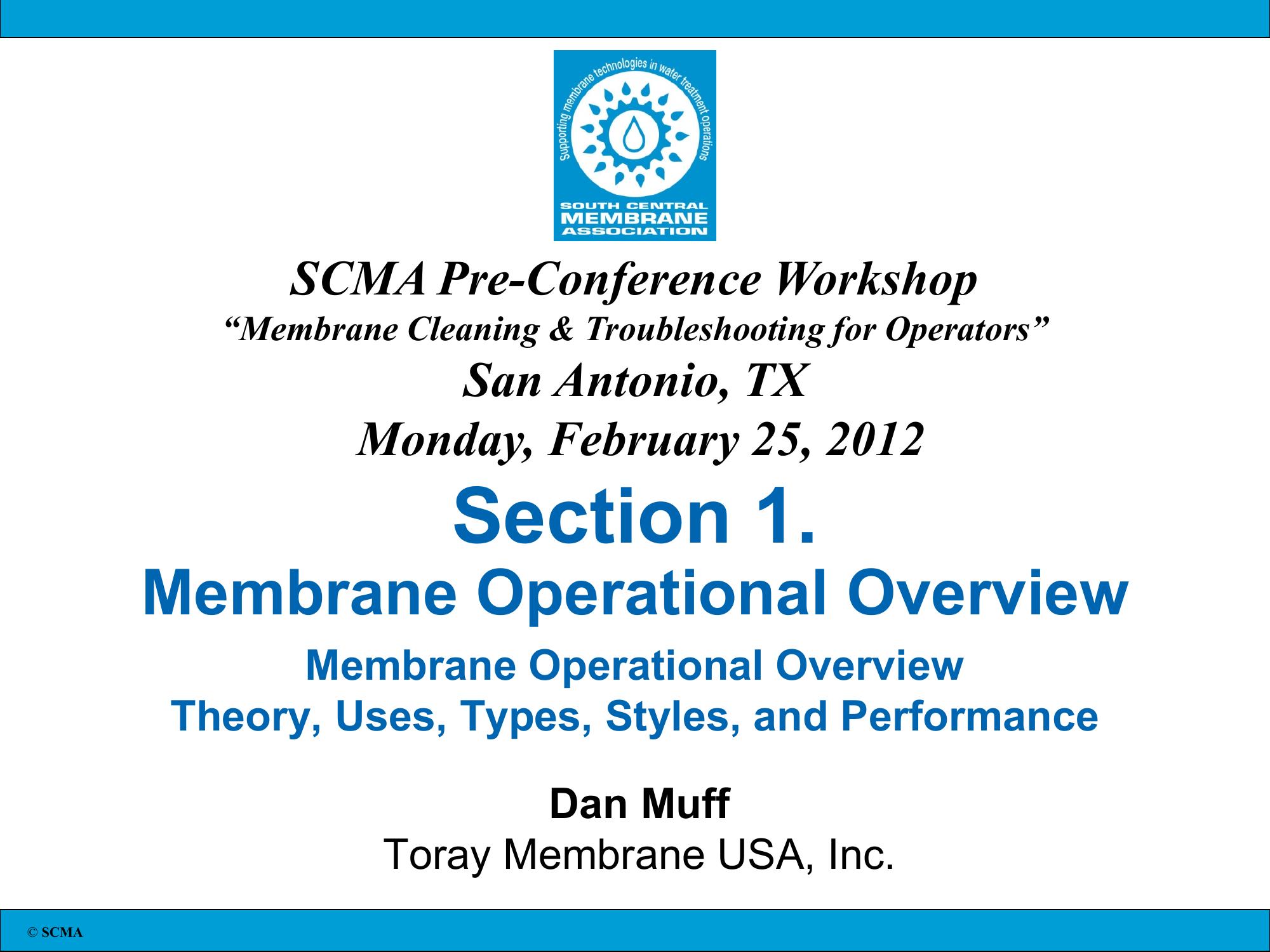 Section 1. Membrane Operational Overview Membrane Operational Overview Theory, Uses, Types, Styles, and Performance