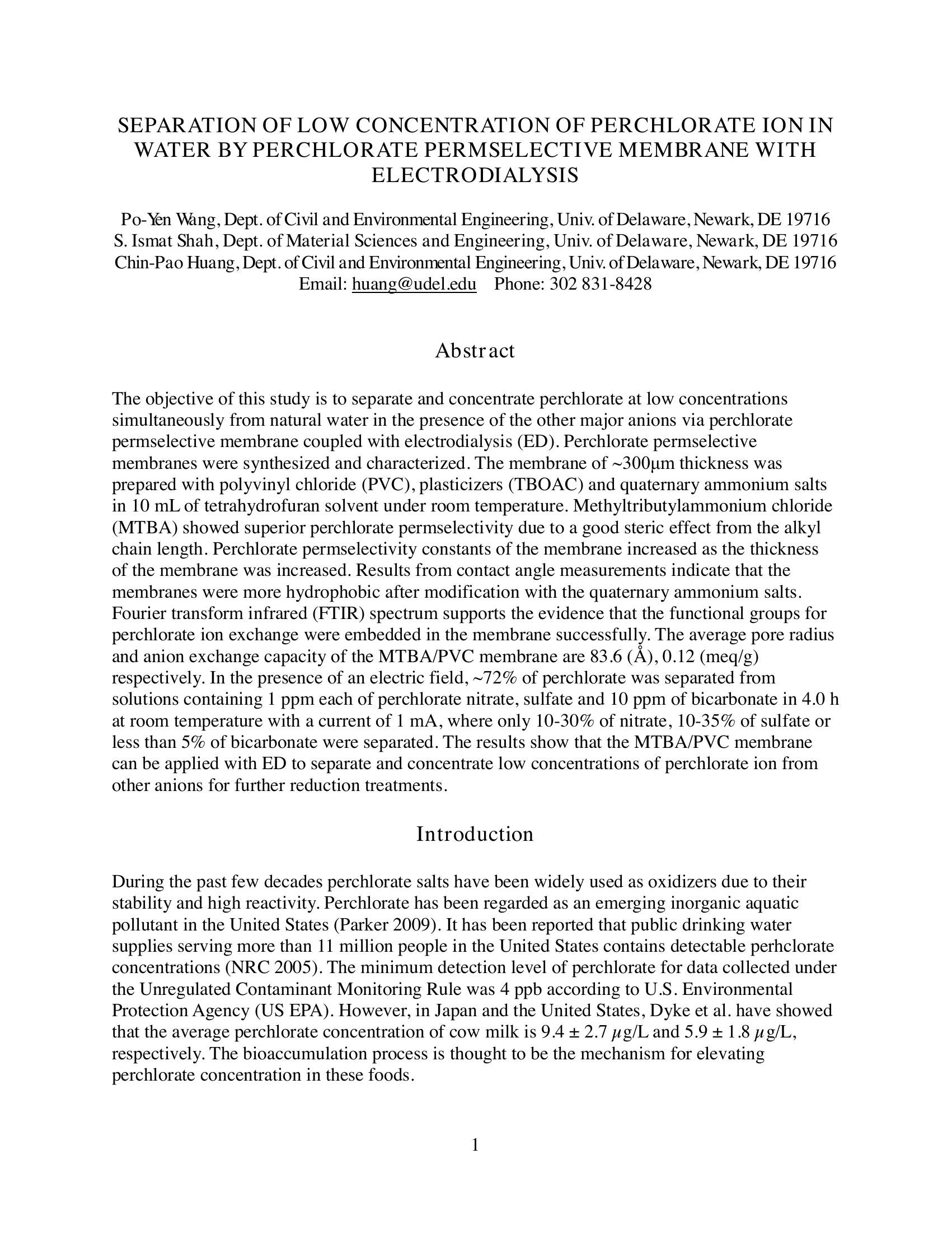 | Keywords | perchlorate, electrodialysis |