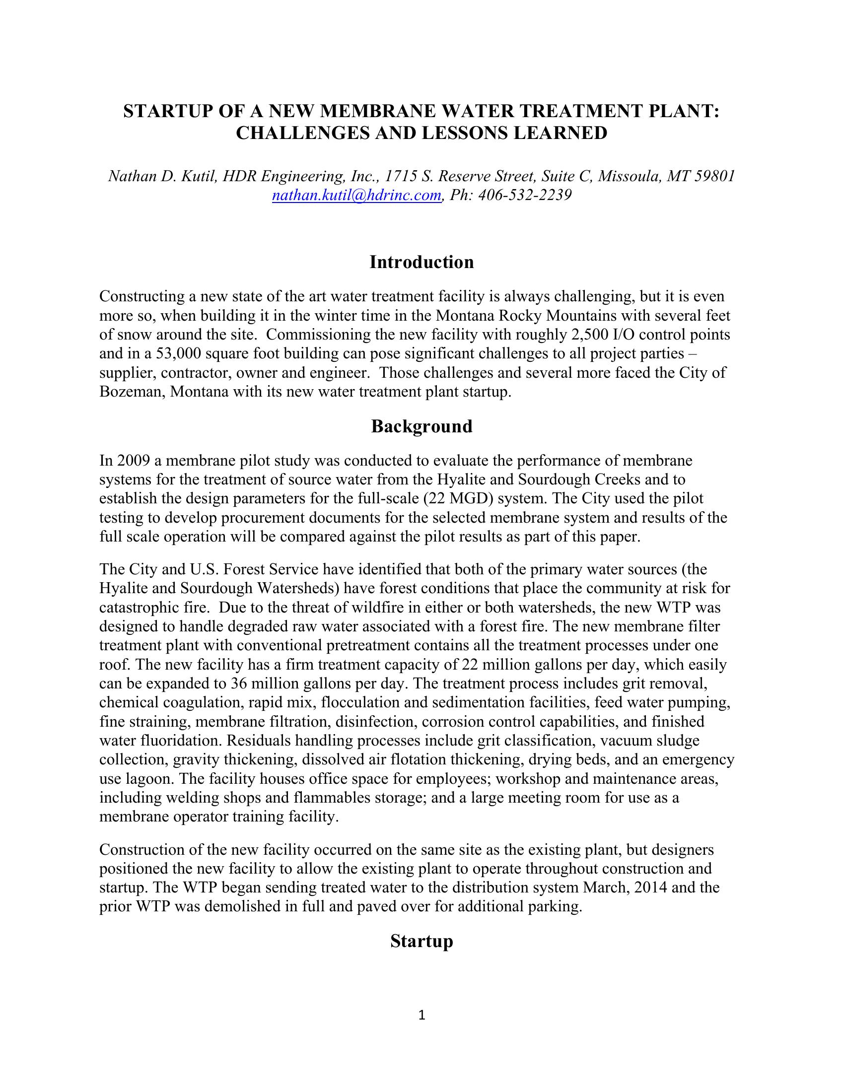 This presentation addresses the challenges encountered while building a facility of this size in a cold weather climate in the Rocky Mountains of Montana. The focus will be on the start-up of the facility between ?construction complete? and substantial completion. Specific details of what worked and what didn?t work will be addressed as well as lessons learned on how to better prepare for the next startup of this size and complexity. Engineers, operators, and utility managers can review this paper to prepare for start-up nuances and study best practices.